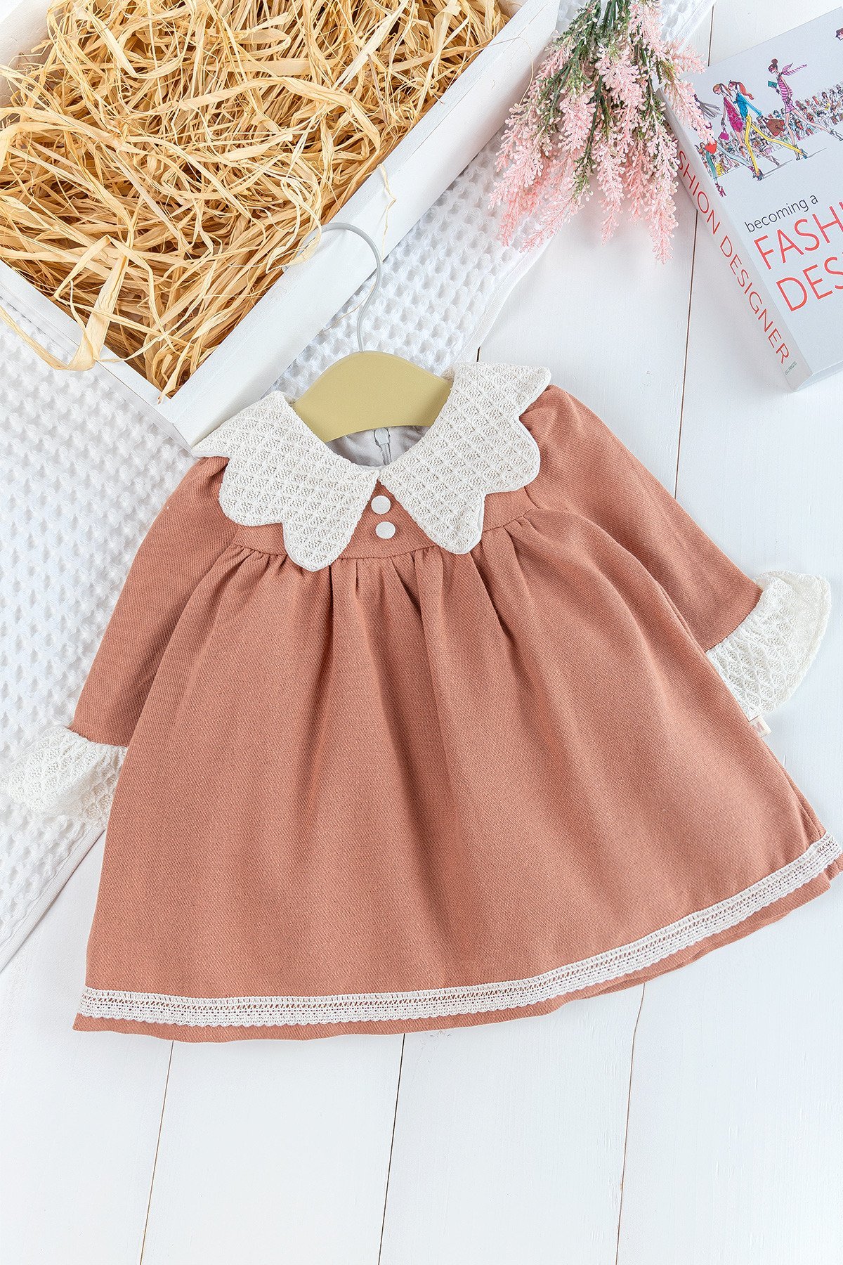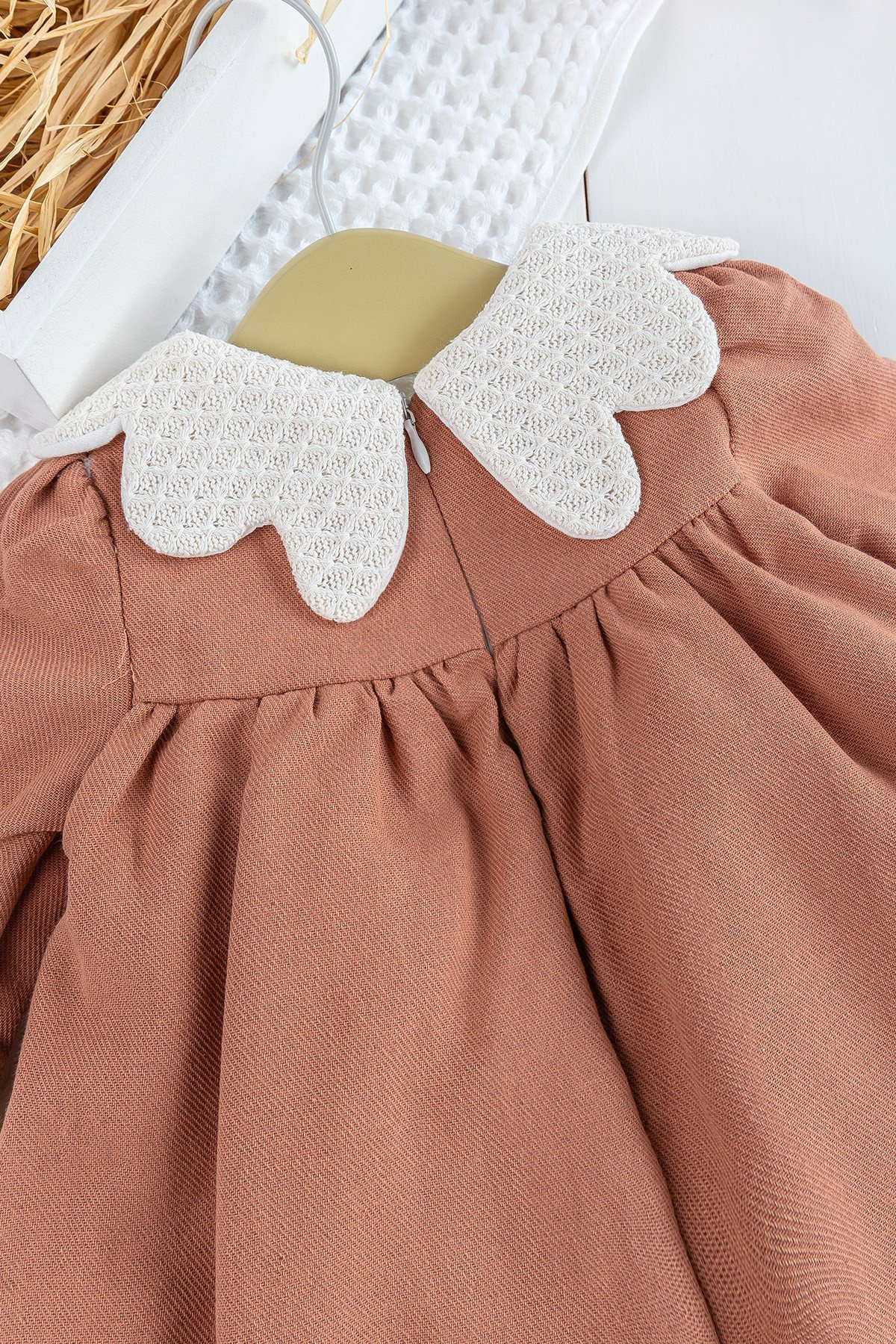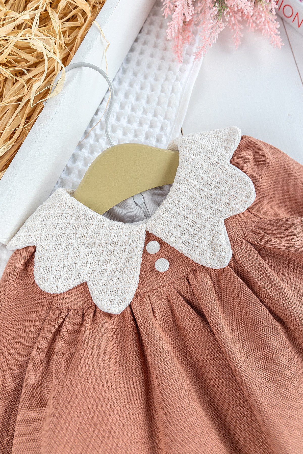 Örgü Yakalı Kol Detaylı Gabardin Kız Bebek Elbise