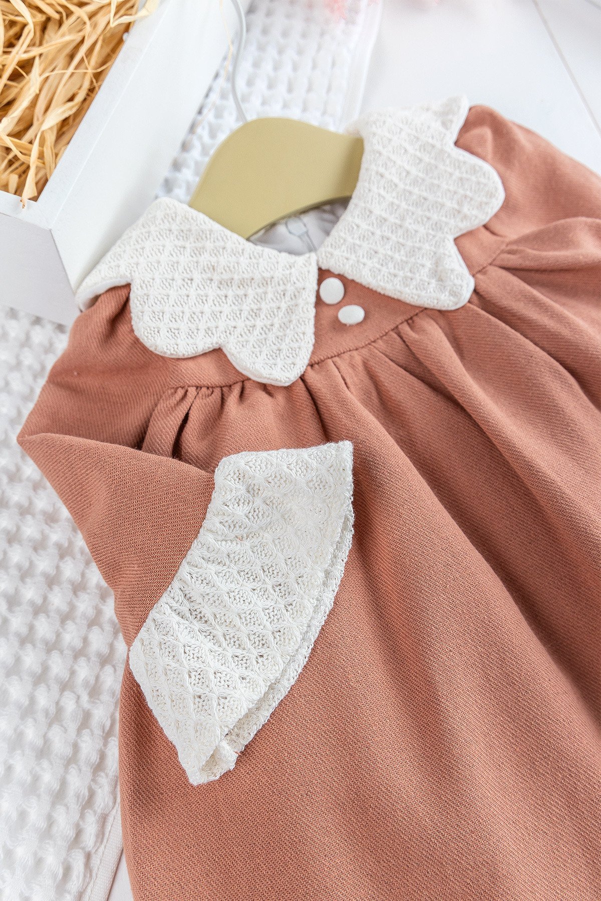 Babymod Knit Collar Sleeve Detailed Gabardine Baby Girl Dress