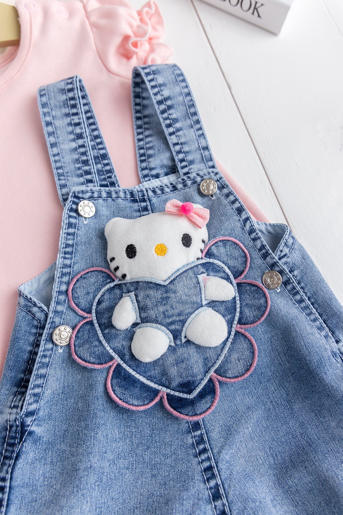 Babymod Toy Cat Heart Patterned Denim Summer Baby Girl Jeans Overalls Jumpsuit Set
