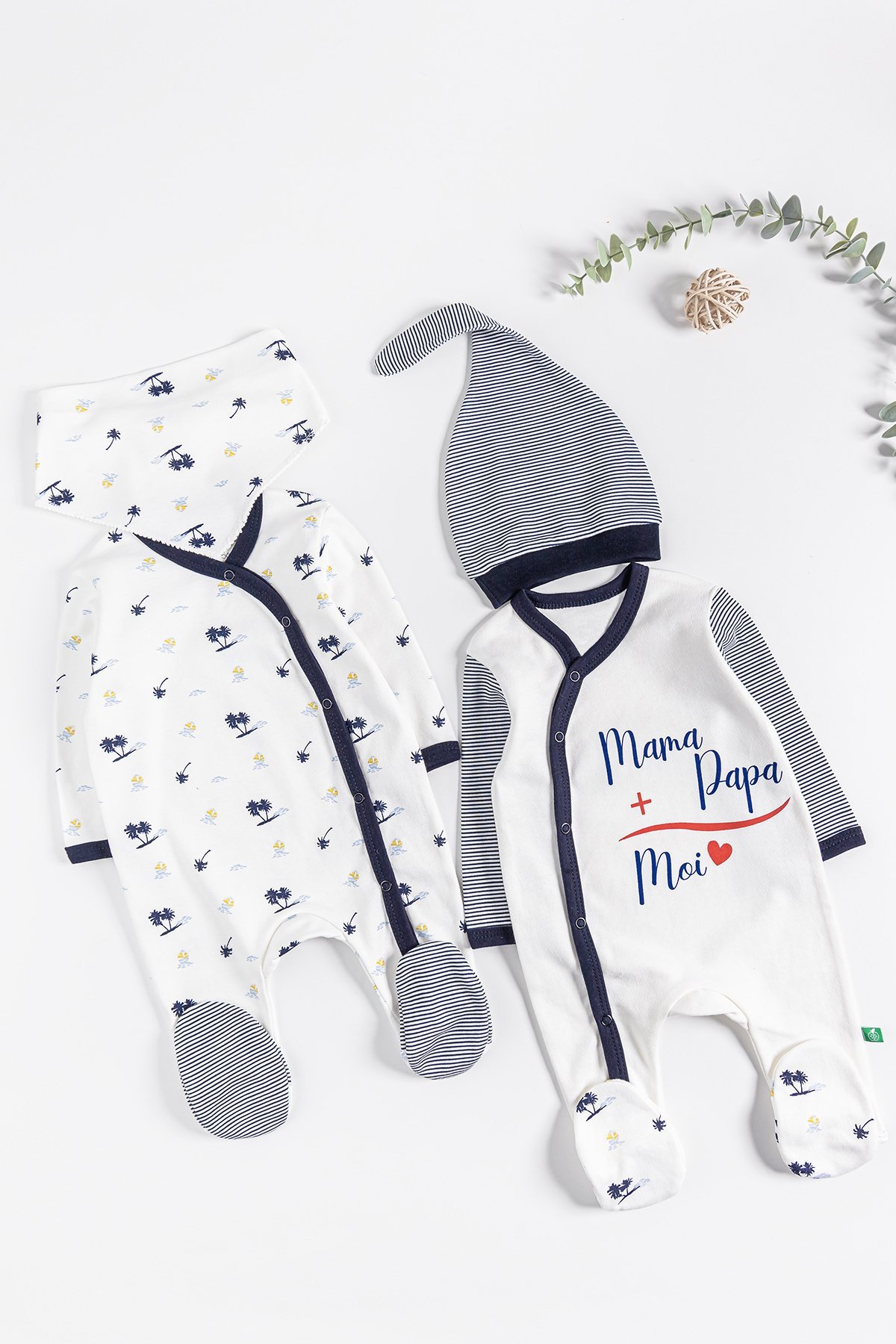 Palmiye Desenli 2'li Uzun Kollu Erkek Bebek Tulum