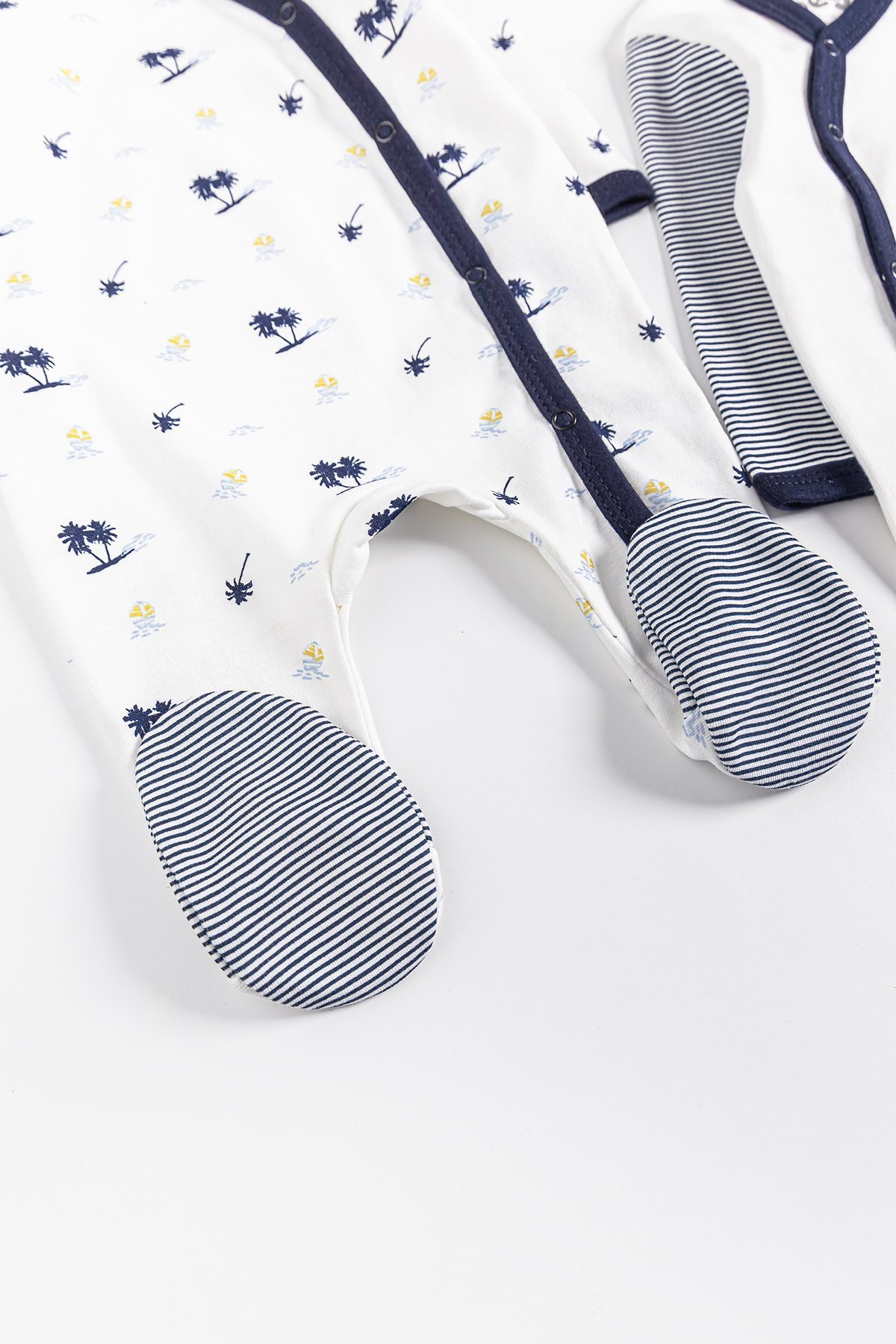 Palmiye Desenli 2'li Uzun Kollu Erkek Bebek Tulum LACİVERT - 3-6 AY