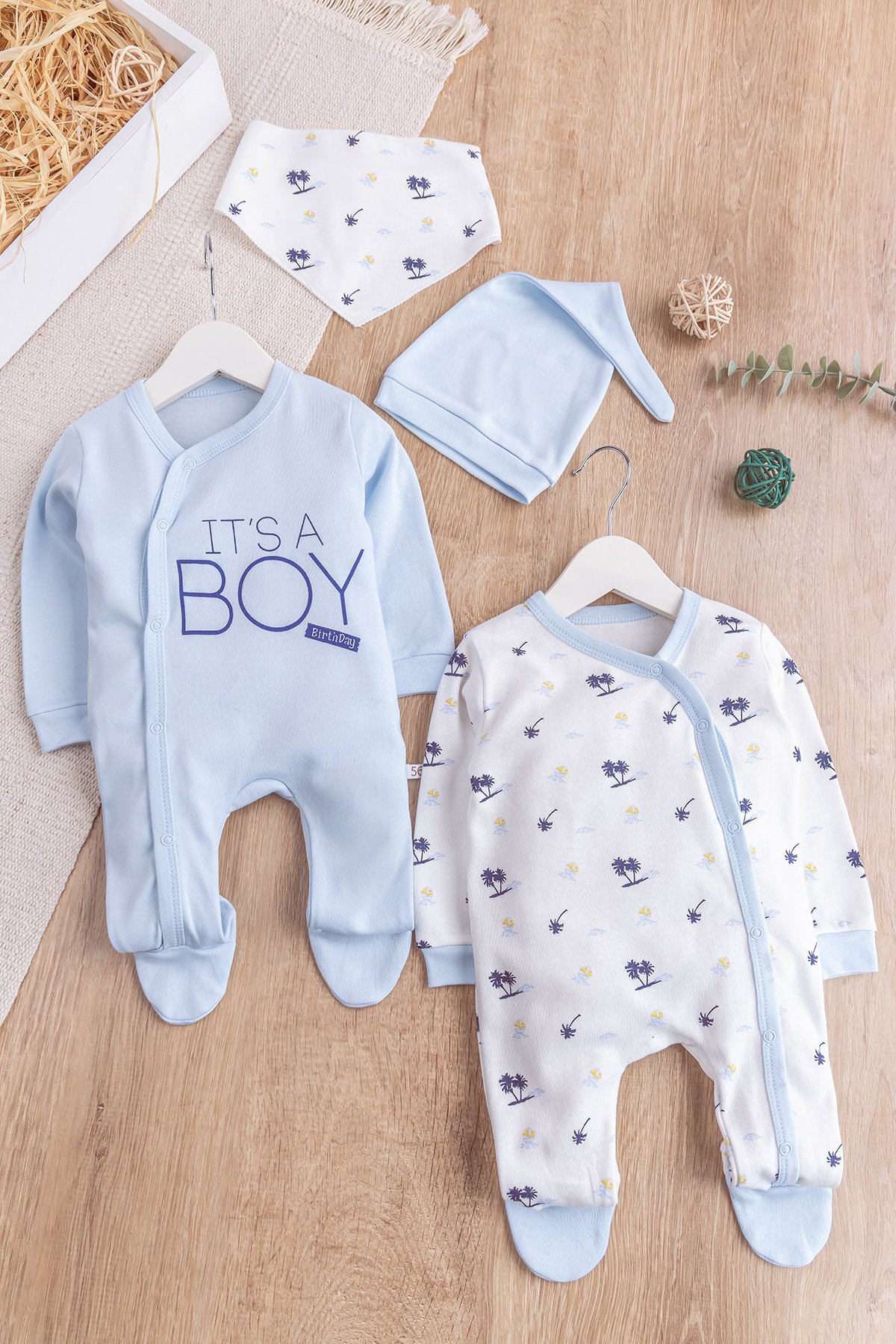 Palmiye Desenli Boy Baskılı 2'li Uzun Kollu Erkek Bebek Tulum Takım