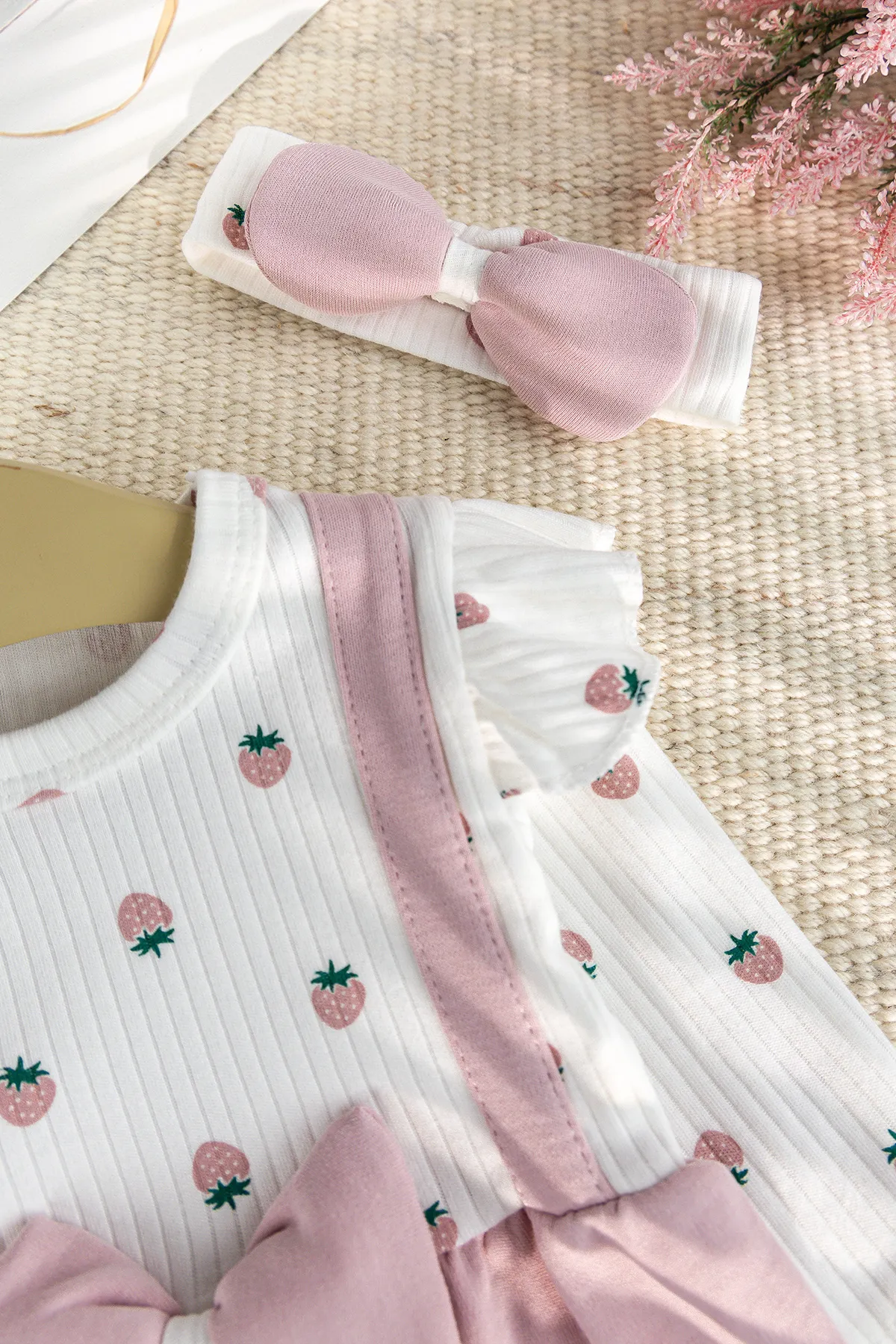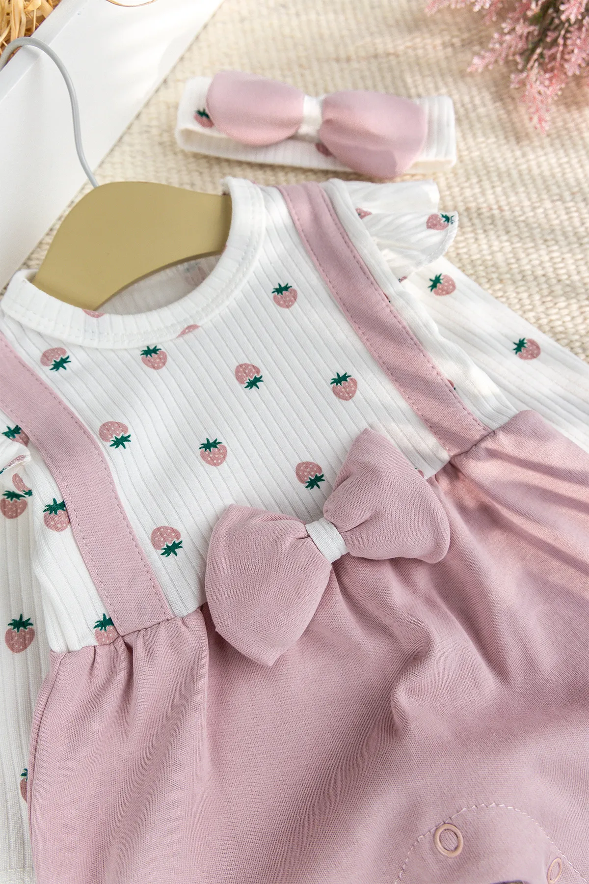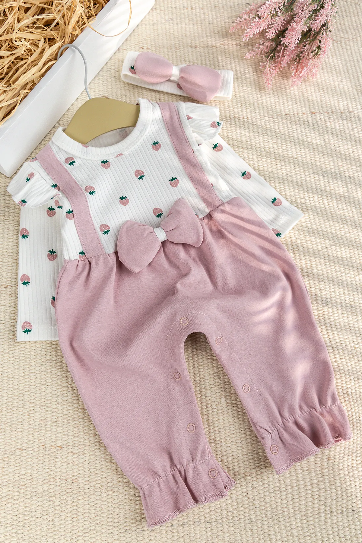Pamuklu Fiyonklu Bandanalı Kız Bebek Tulum