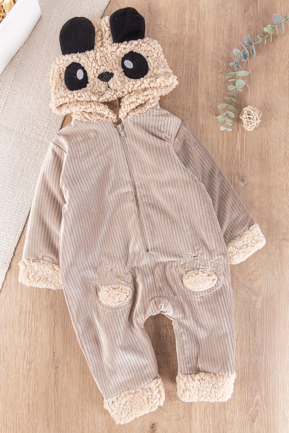 - Bebek tulumun kapüşonu panda figürlüdür.