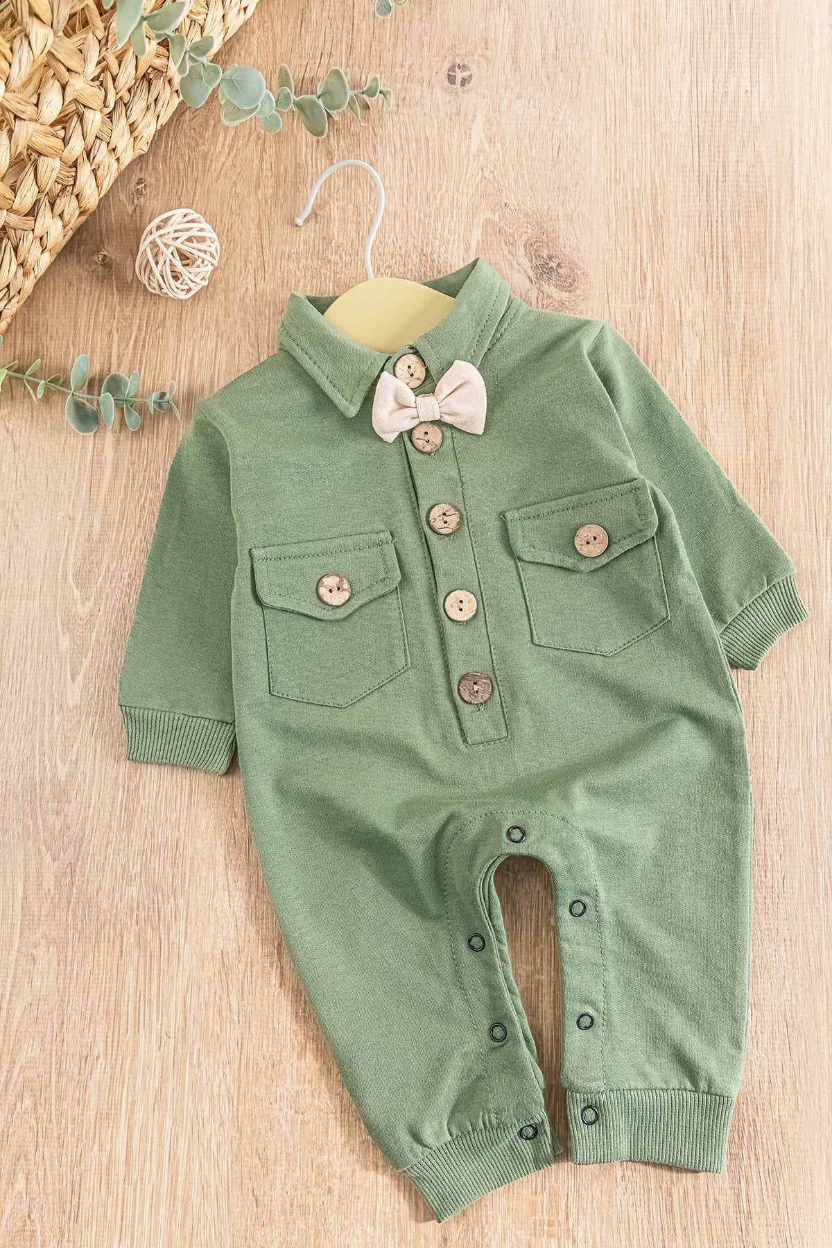 - Bebek tulumun ön kısmı düğmelidir.