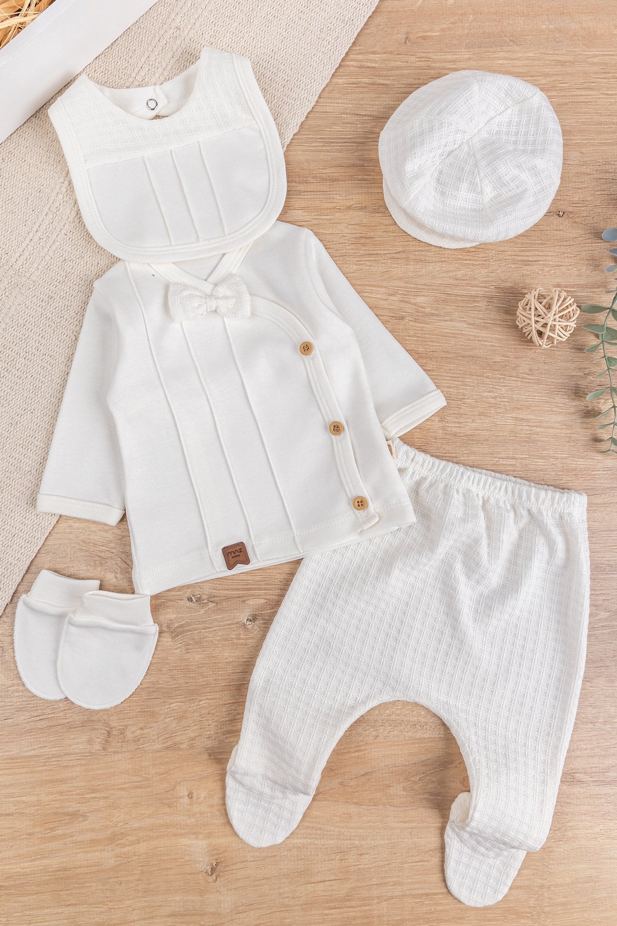 Papyonlu Pamuklu 5 Parça Erkek Bebek Hastane Çıkışı Bebek Takımı