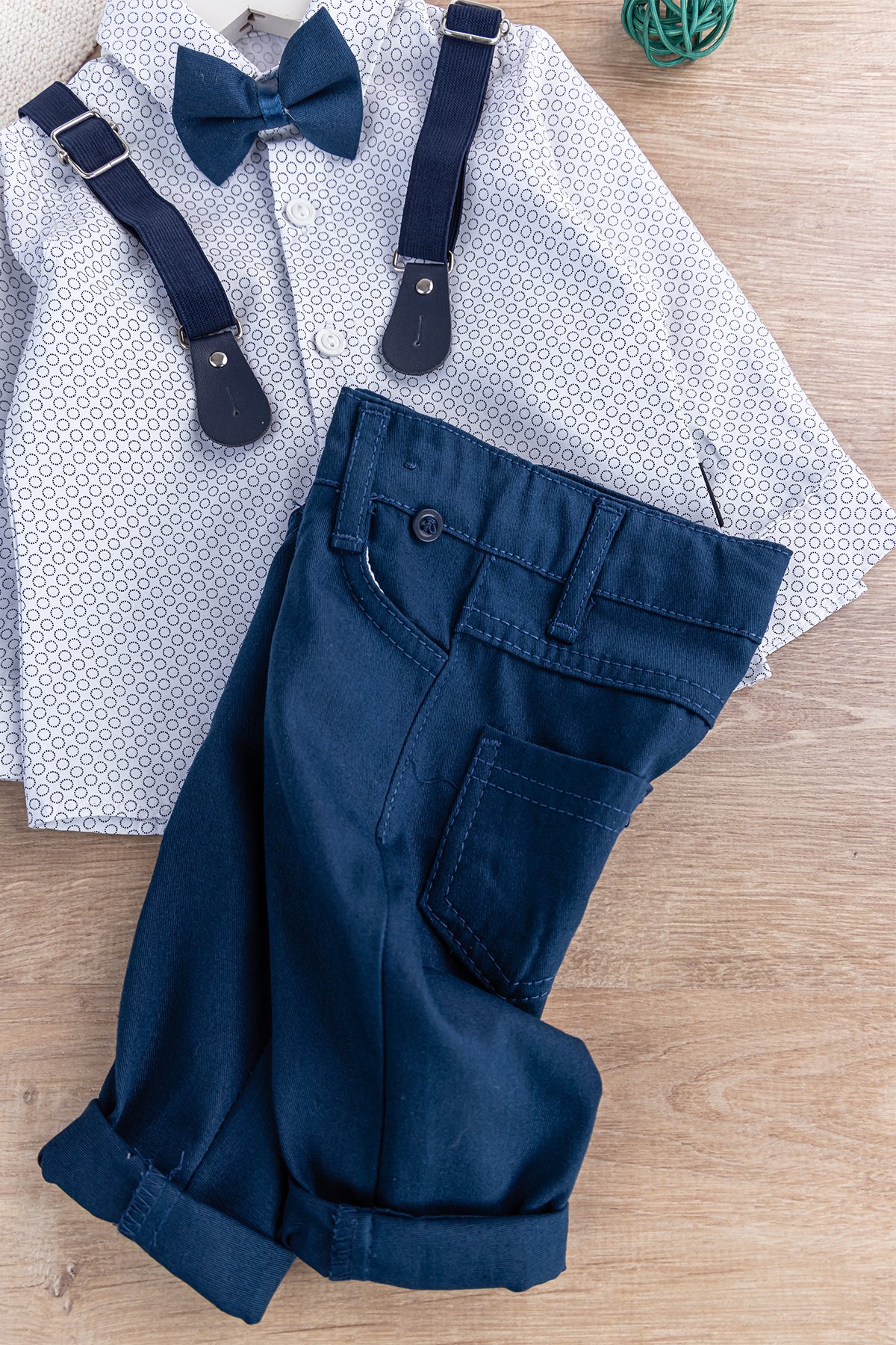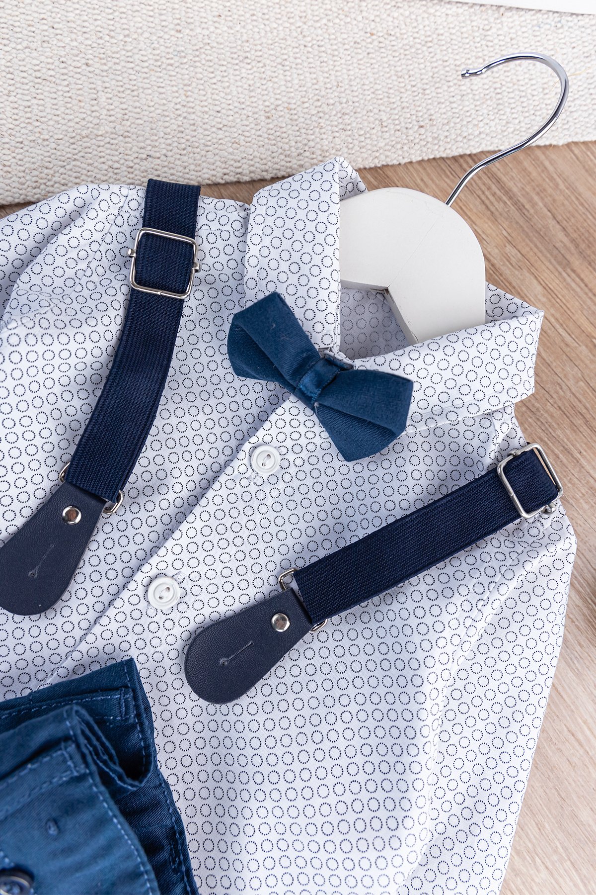 Babymod Baby Boy Shirt Trousers Set with Bow Tie and Suspenders