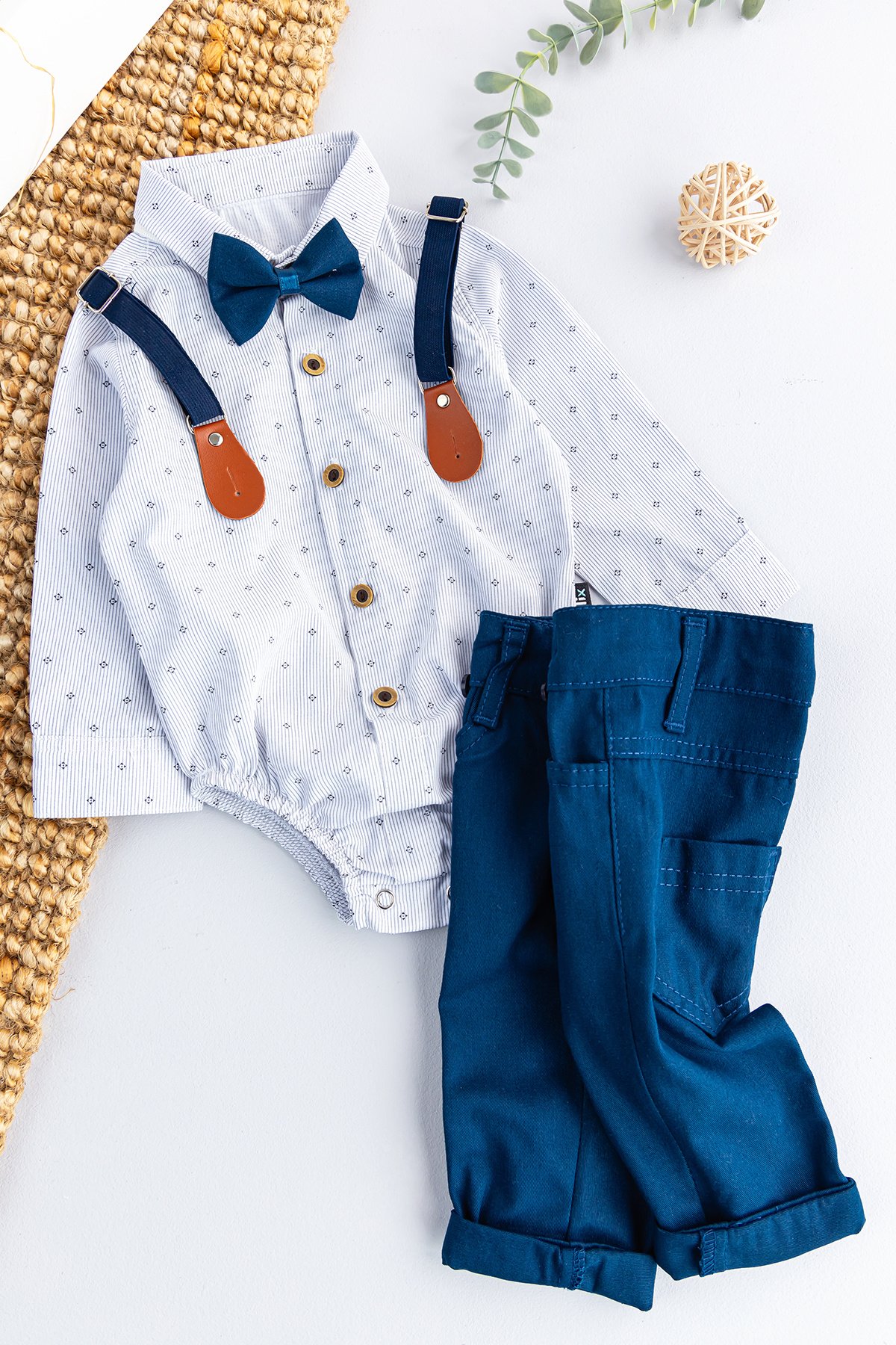 Papyonlu Pantolon Askılı Zıbın Gömlekli Erkek Bebek Takım