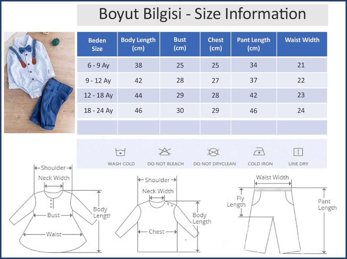 - Bebek zıbın gömlek bacak kısımları lastiklidir.