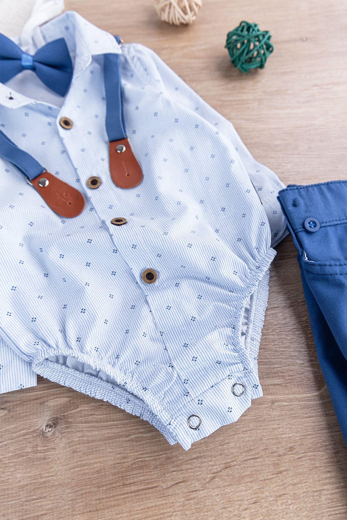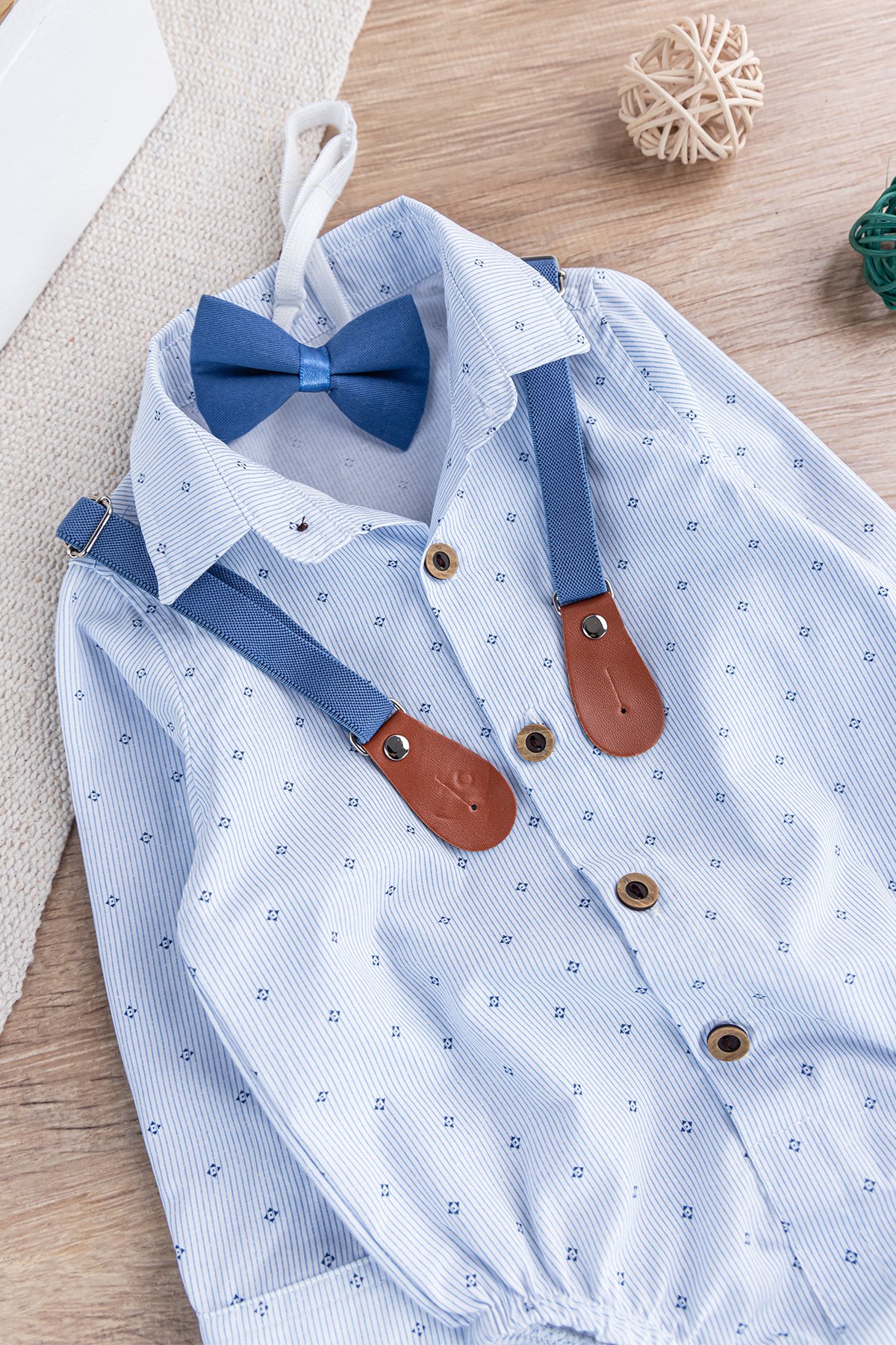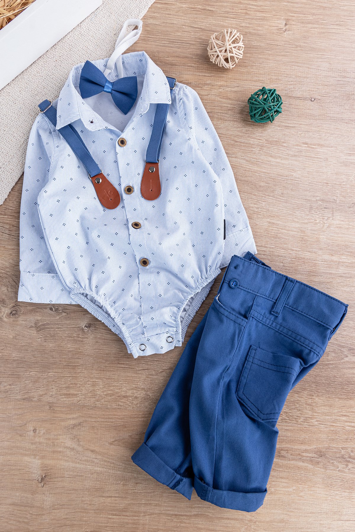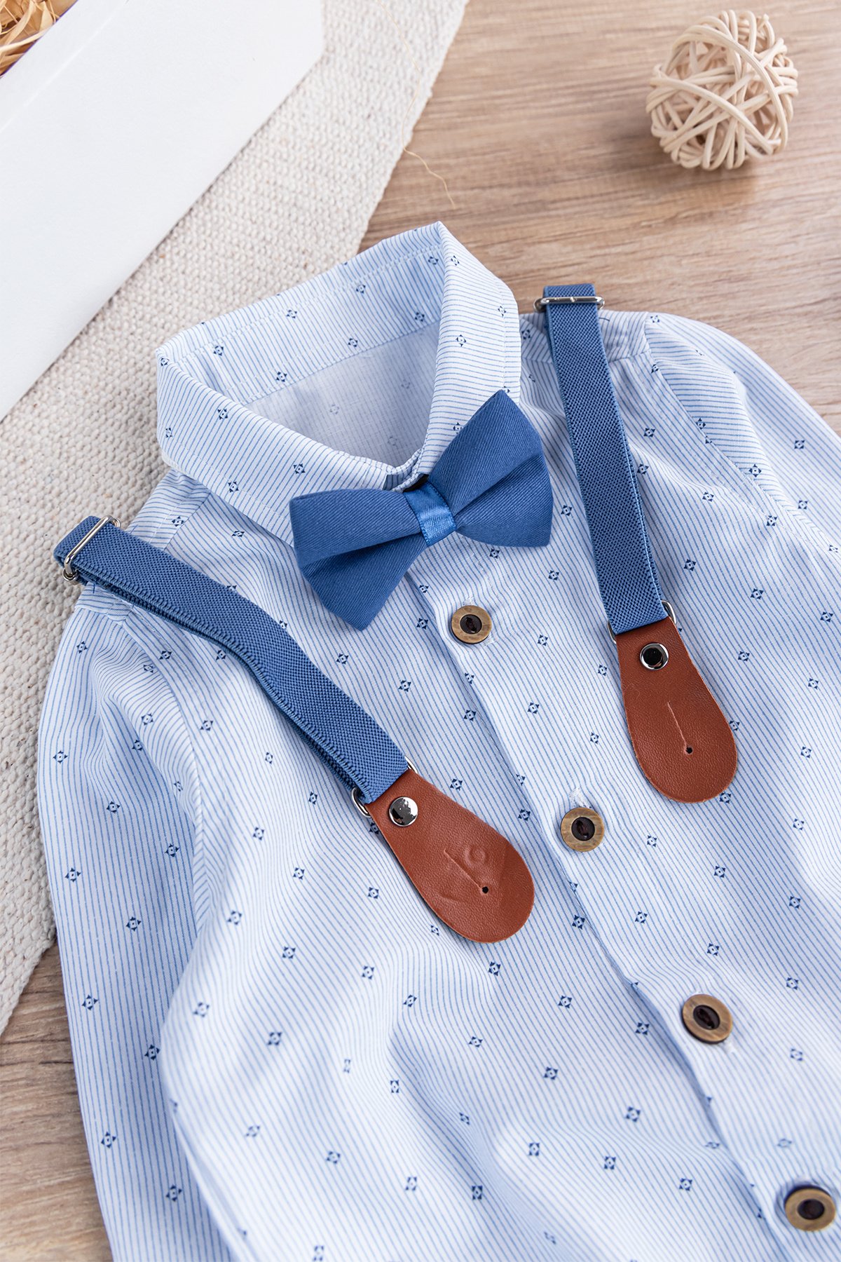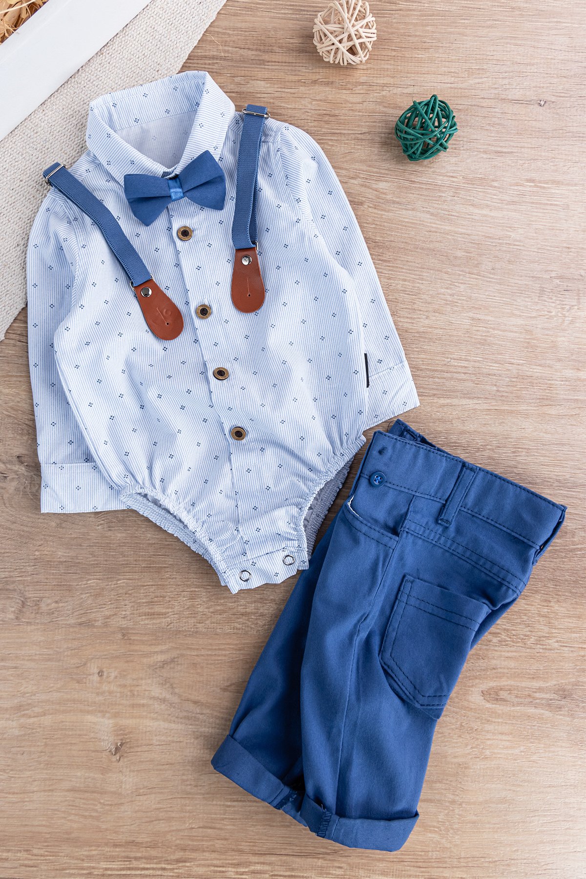 Papyonlu Pantolon Askılı Zıbın Gömlekli Erkek Bebek Takım