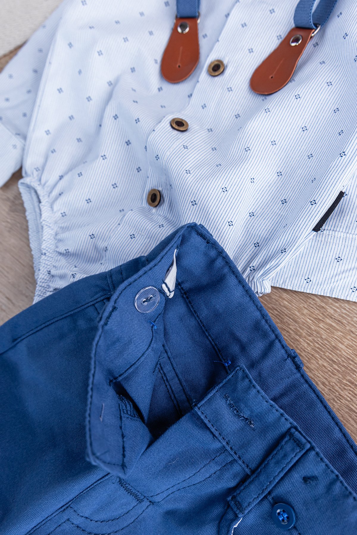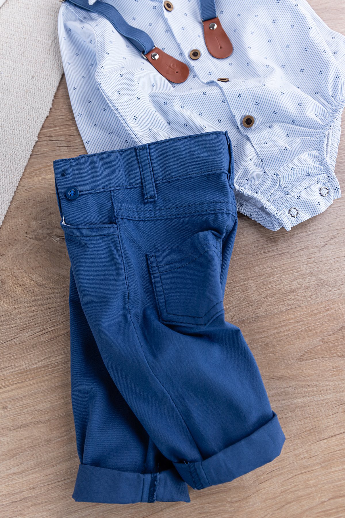 Papyonlu Pantolon Askılı Zıbın Gömlekli Erkek Bebek Takım İndigo - 9-12 AY