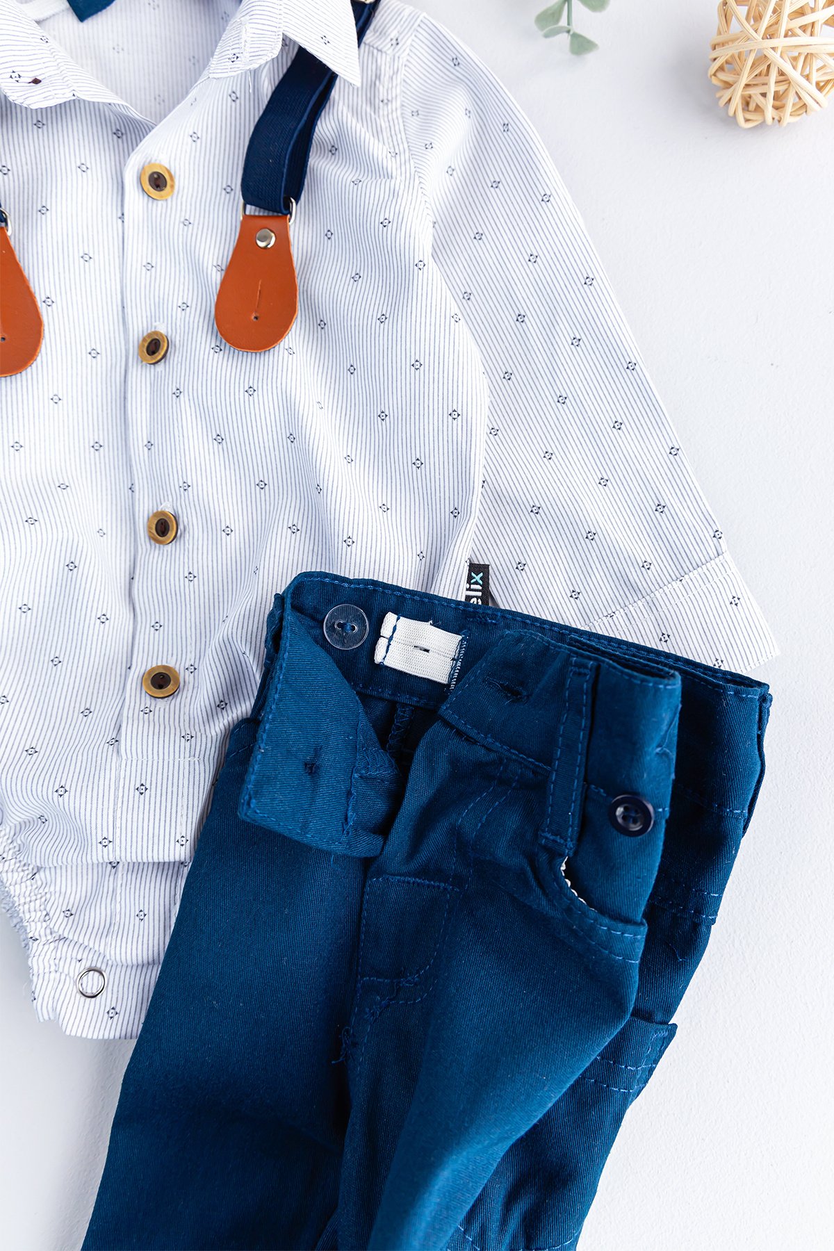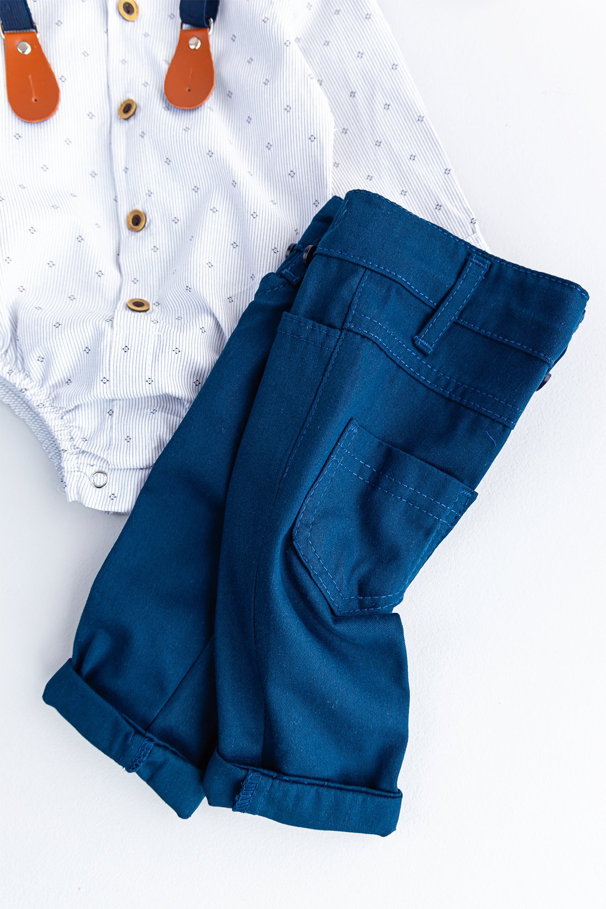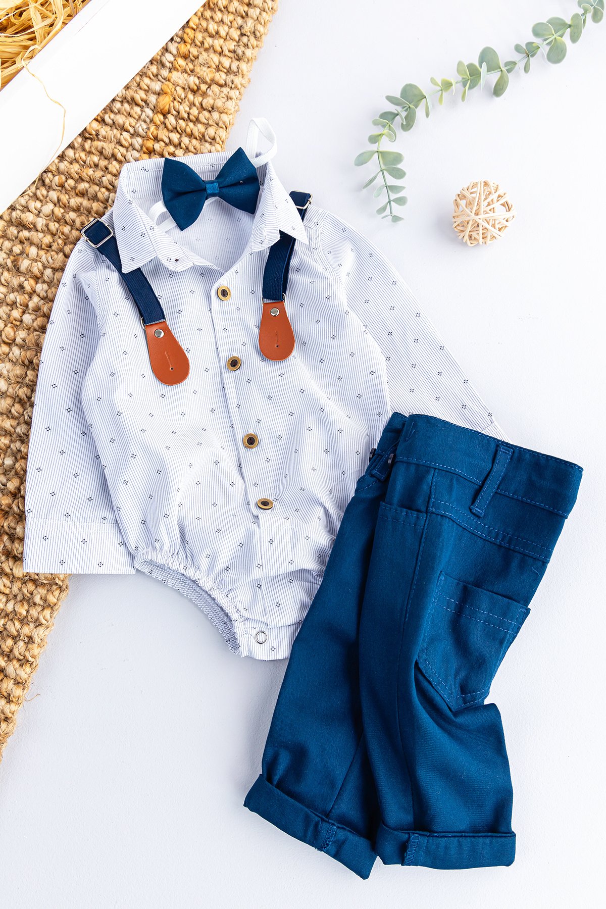 Papyonlu Pantolon Askılı Zıbın Gömlekli Erkek Bebek Takım LACİVERT - 9-12 AY
