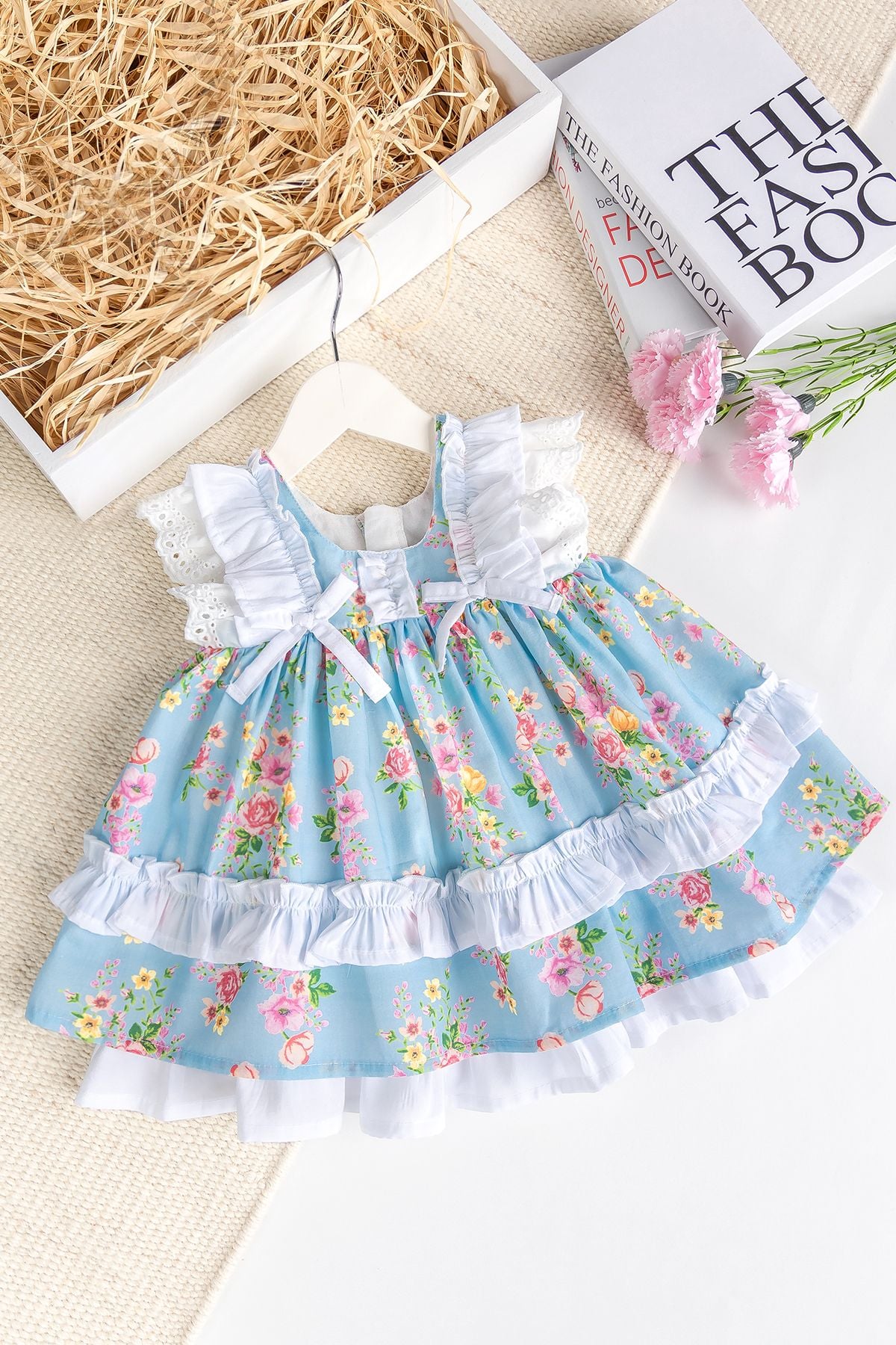 Paula Çiçekli Dogum Günü Özel Gün Şık Kız Bebek Elbise