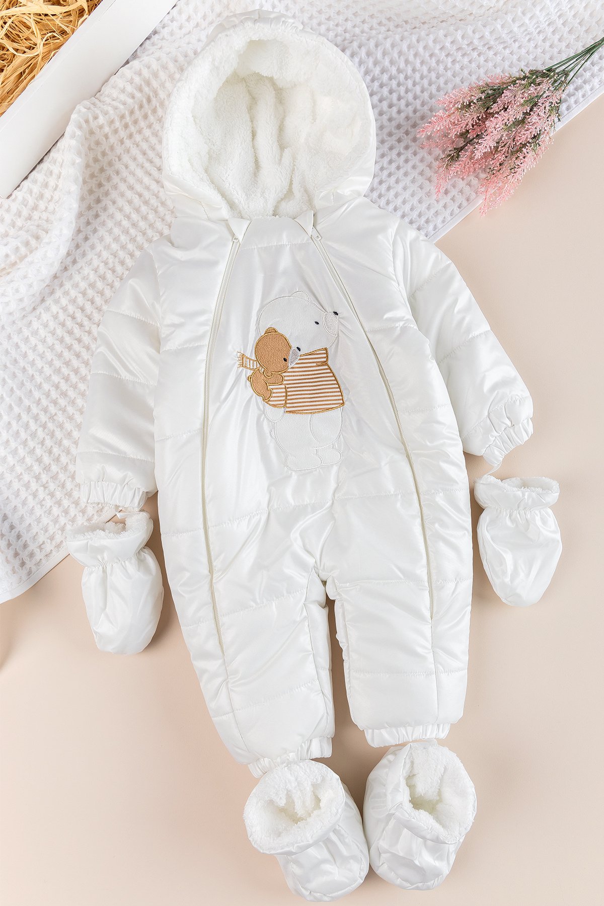 Peluş Astarlı Kız Erkek ebek Astronot Tulum BEYAZ - 12 Ay
