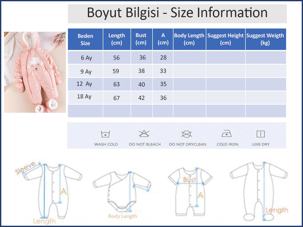 - Bebek tulumun iç kısmı peluş astarlıdır.
