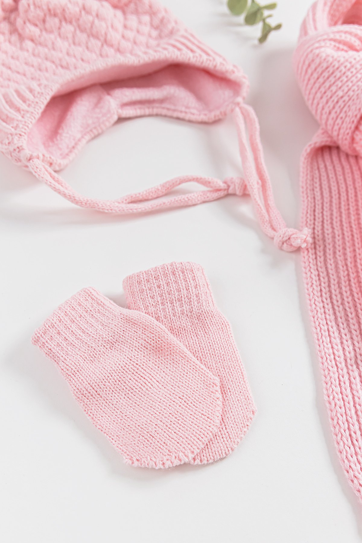 Ponponlu 0-18 Ay Kız Bebek Atkı Bere Eldiven Takımı