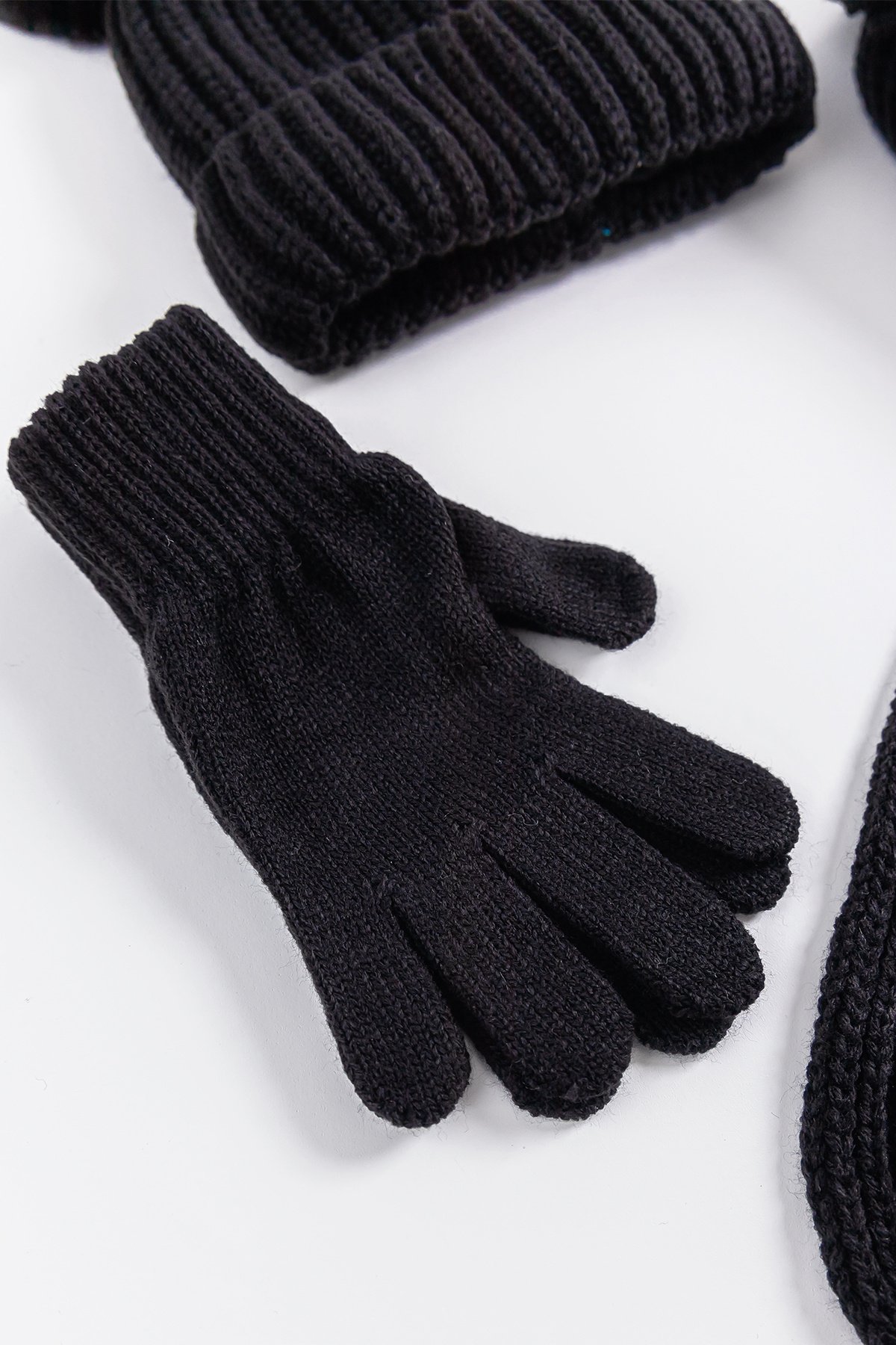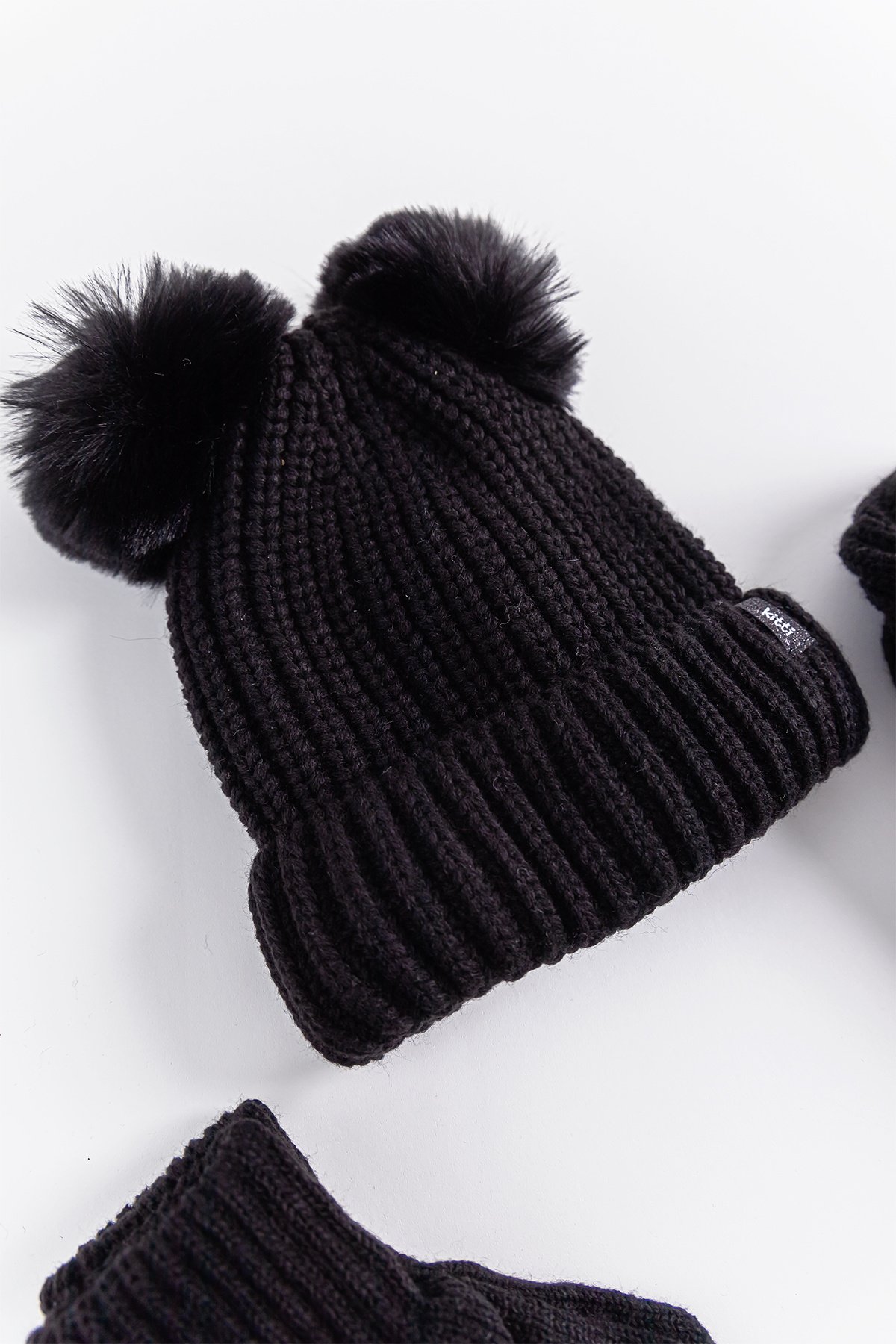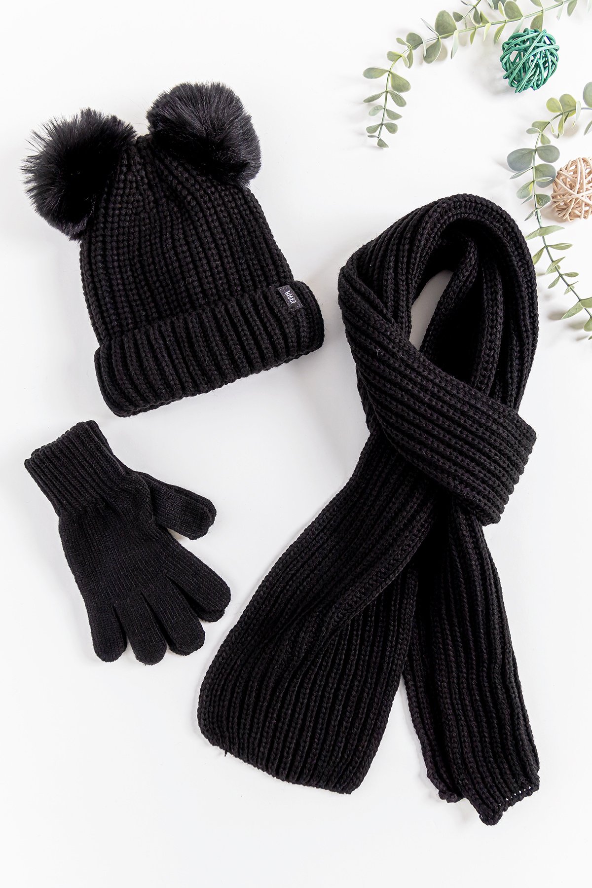 Ponponlu 9-15 Yaş Kız Çocuk Atkı Bere Eldiven Takımı SİYAH - 9-15 Yaş