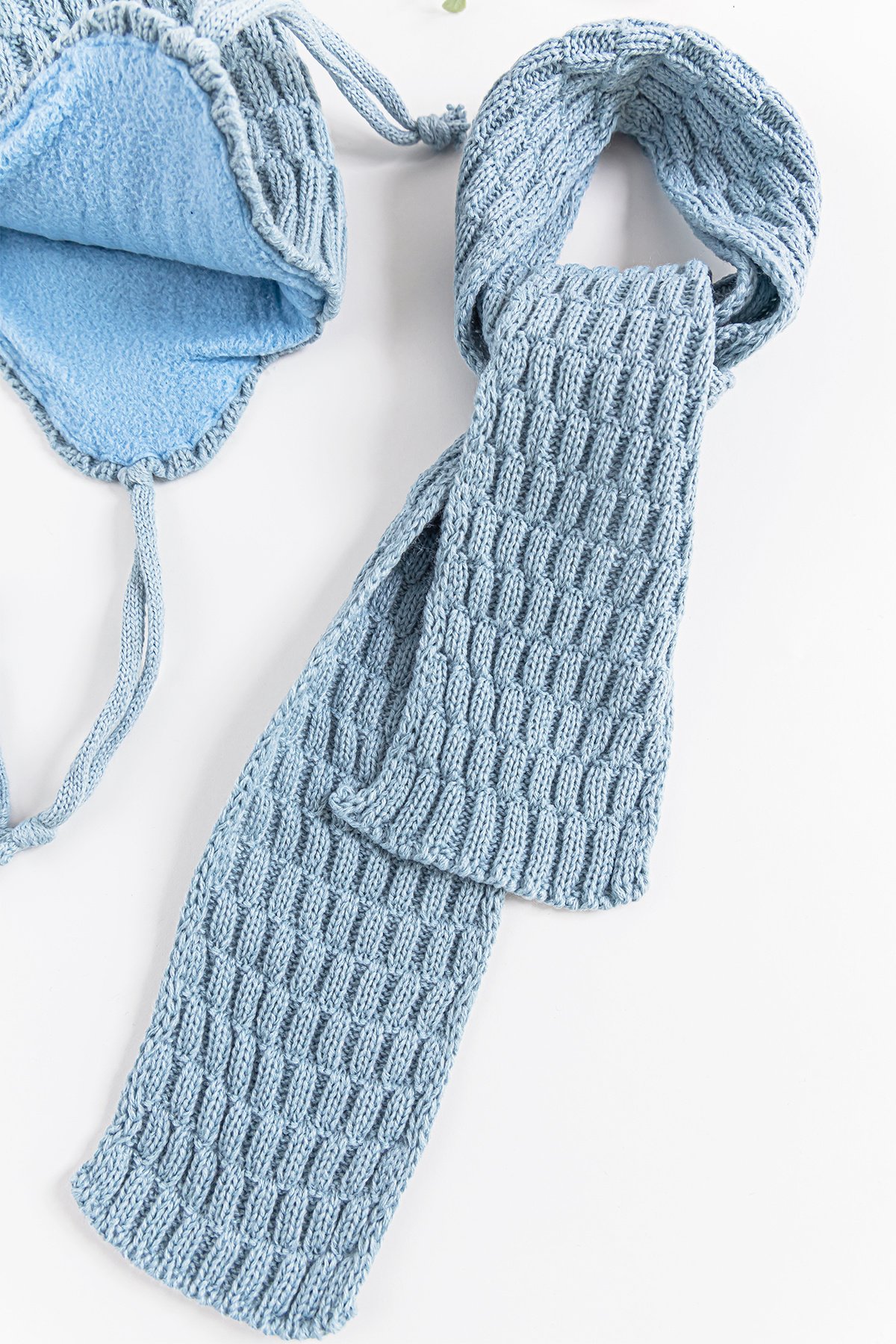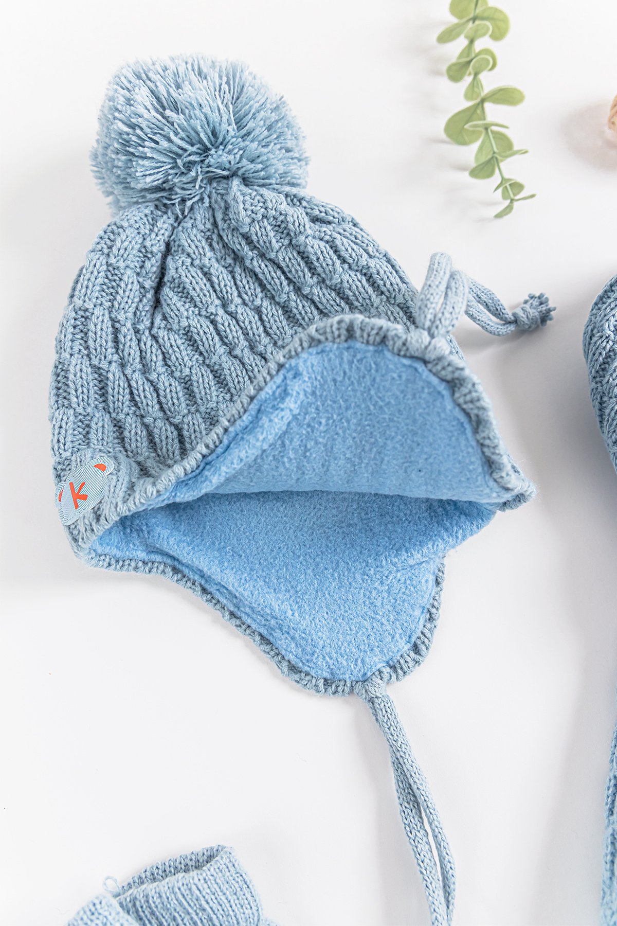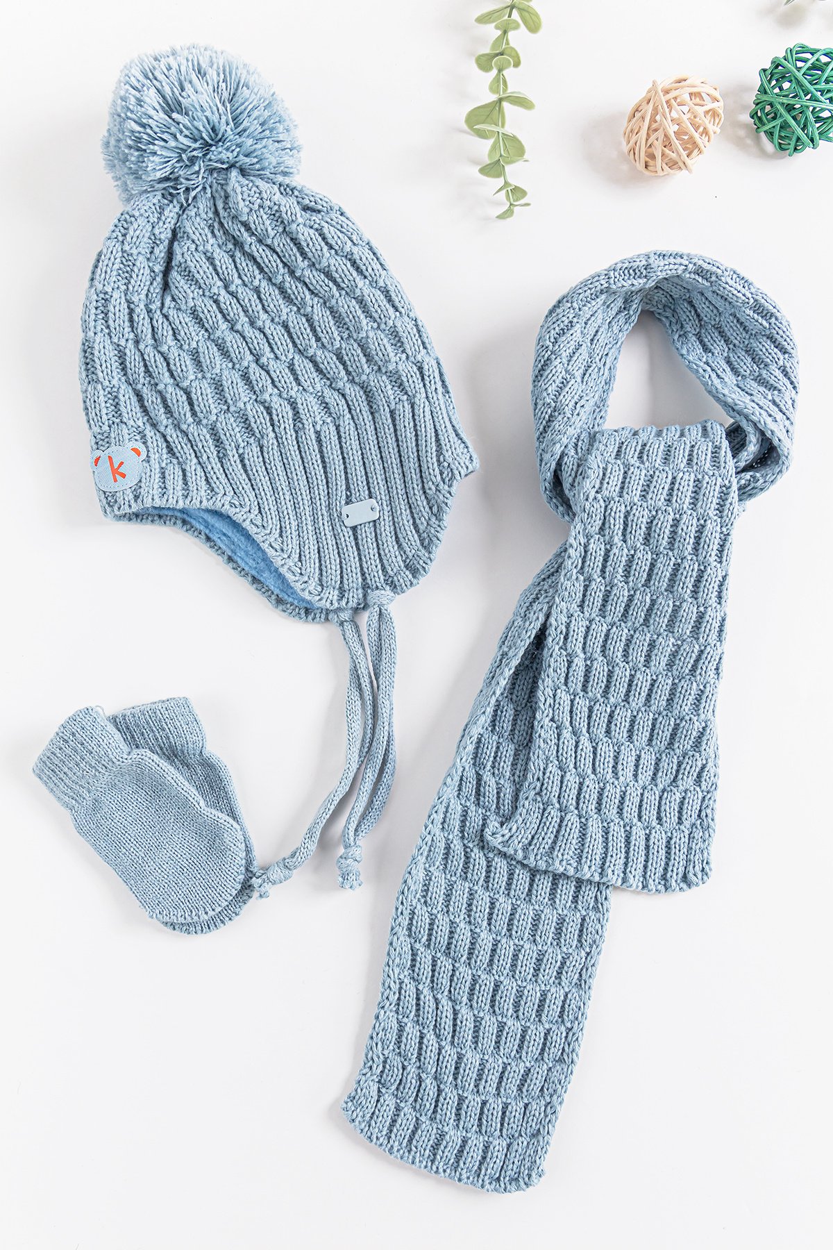 Ponponlu Kulaklıklı 0-18 Ay Erkek Bebek Atkı Bere Eldiven Takımı