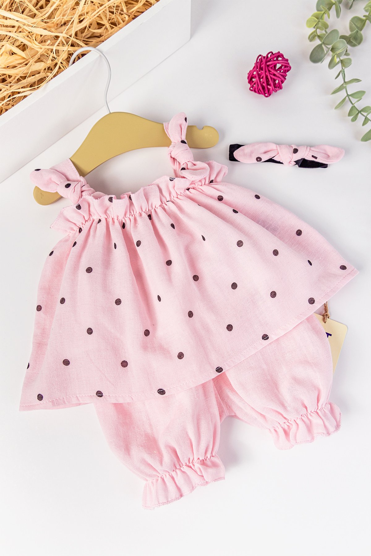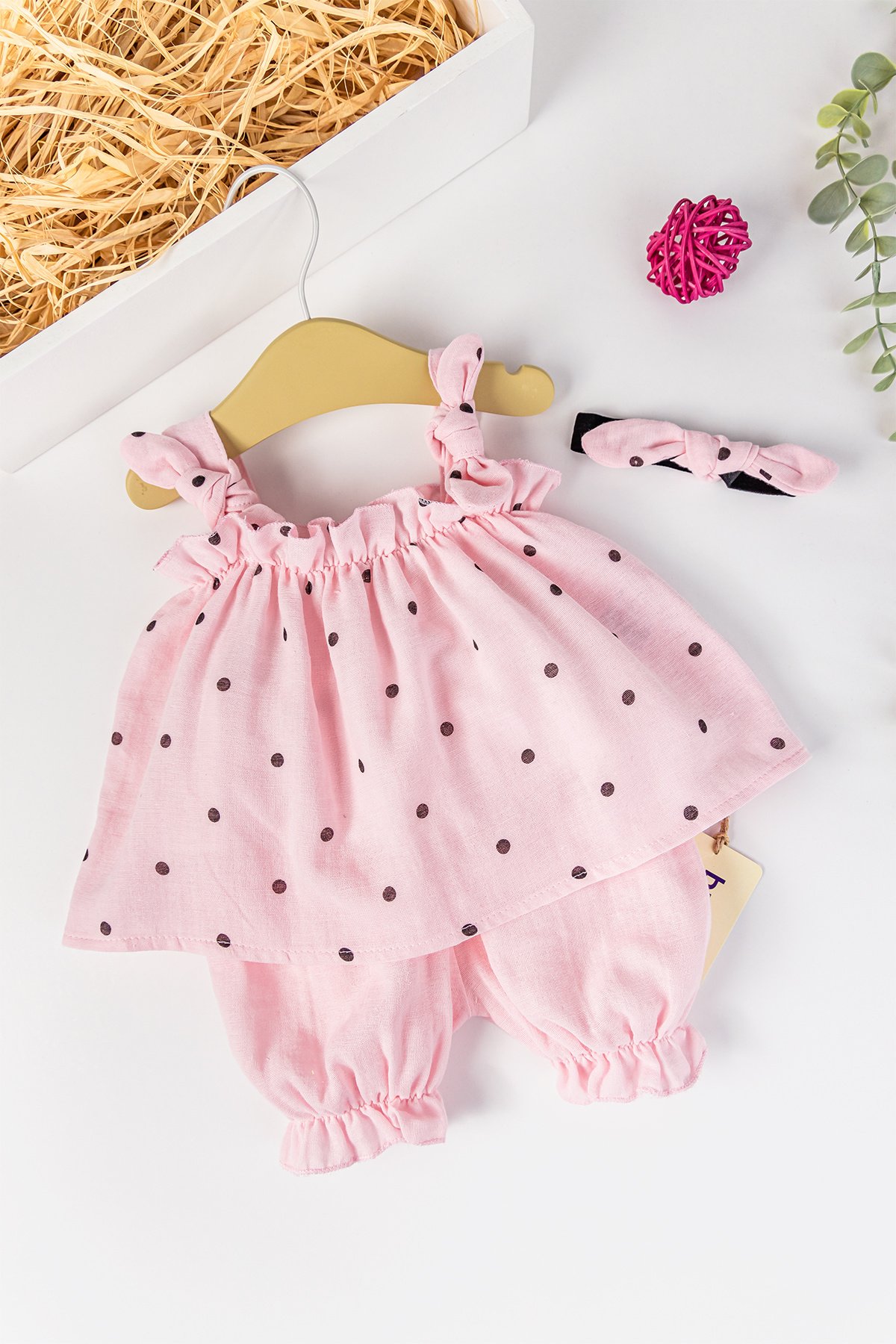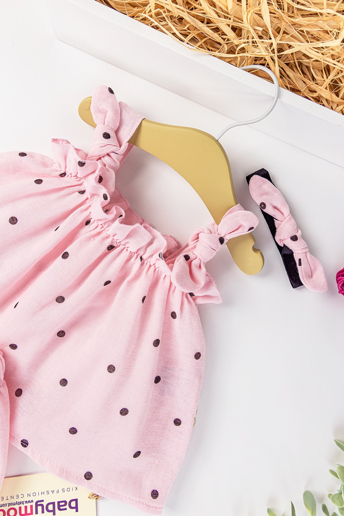 Puantiye Desenli Askılı Yazlık Kız Bebek Elbise Takım