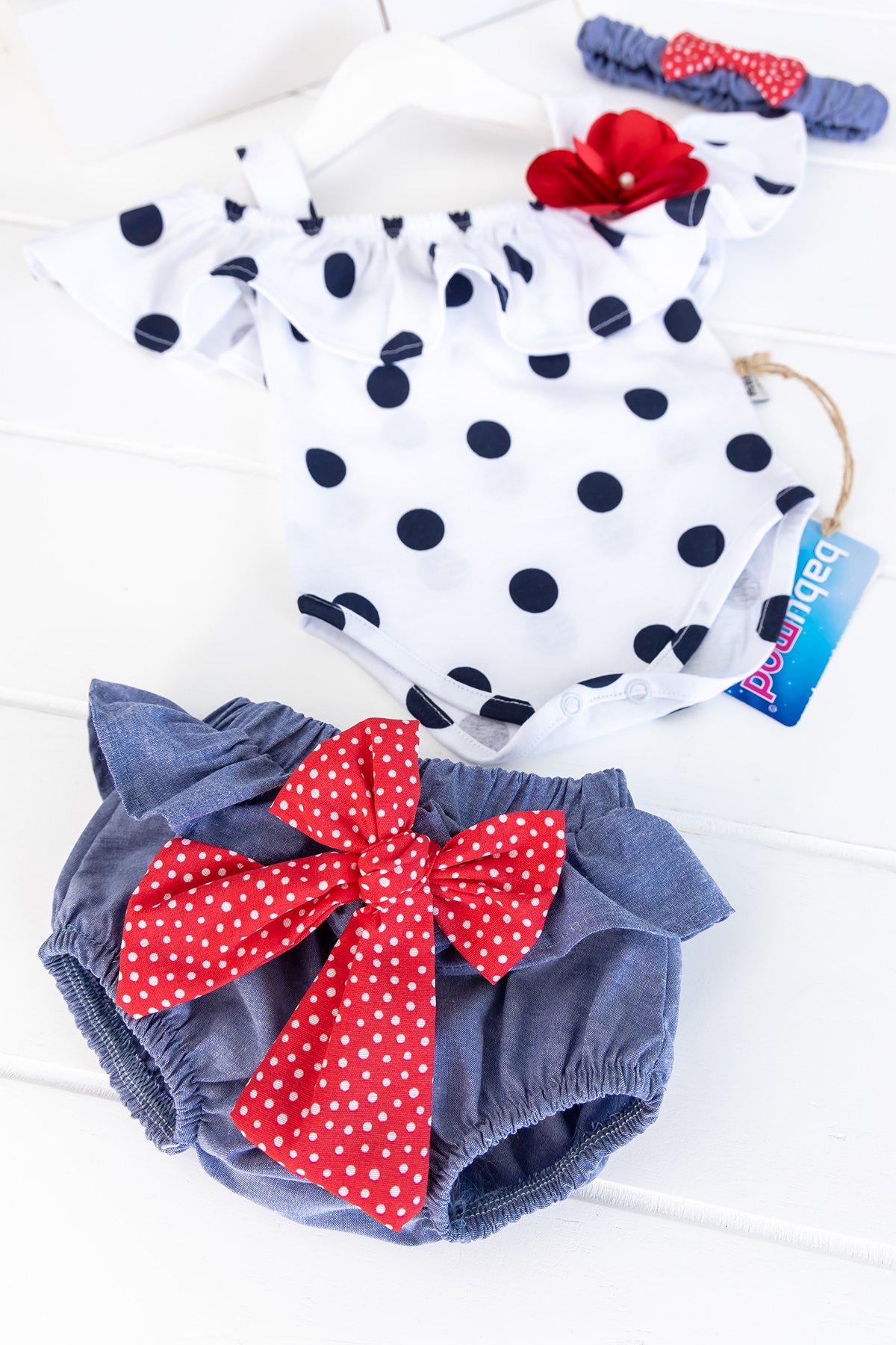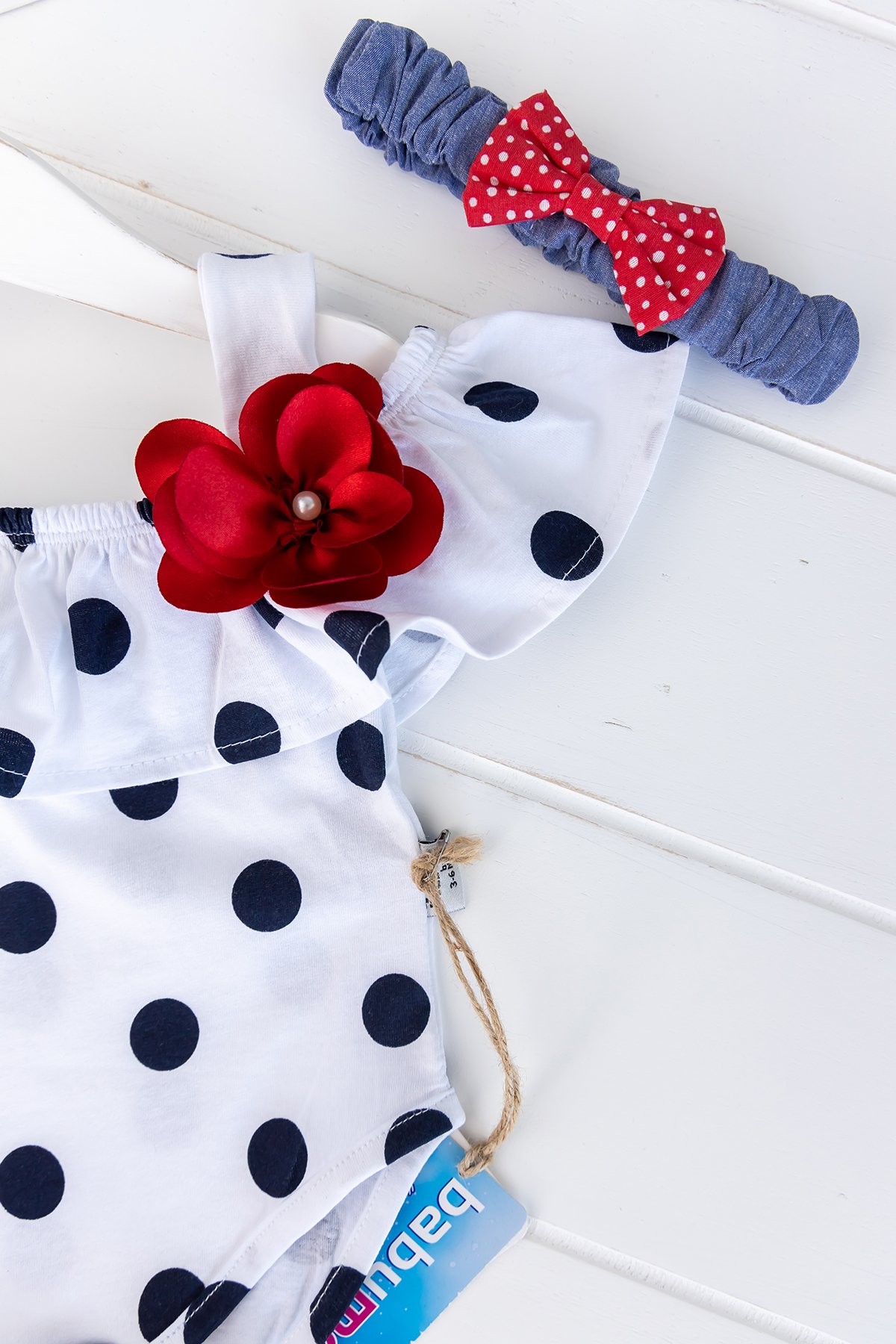 Puantiye Desenli Bandanalı Kız Bebek Tulum Takım