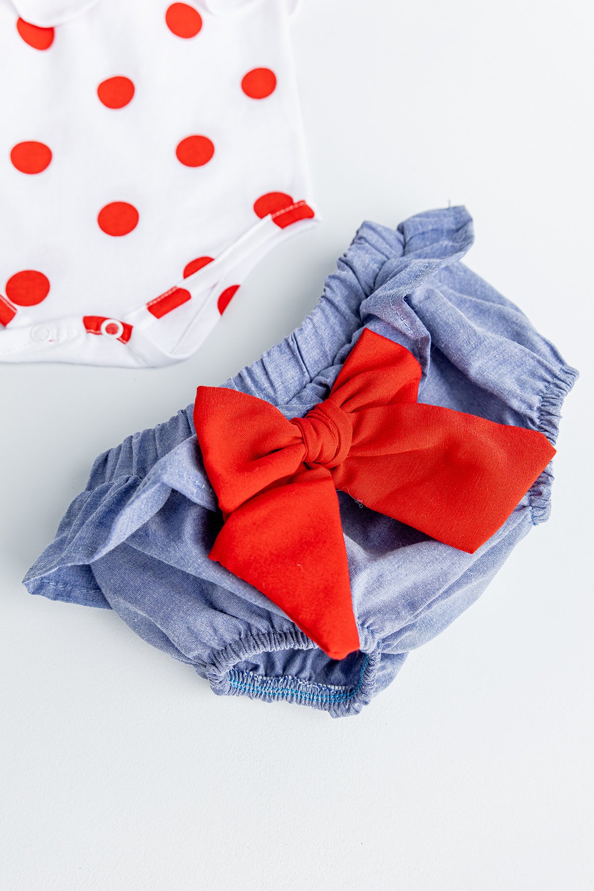 Puantiye Desenli Bandanalı Kız Bebek Tulum Takım