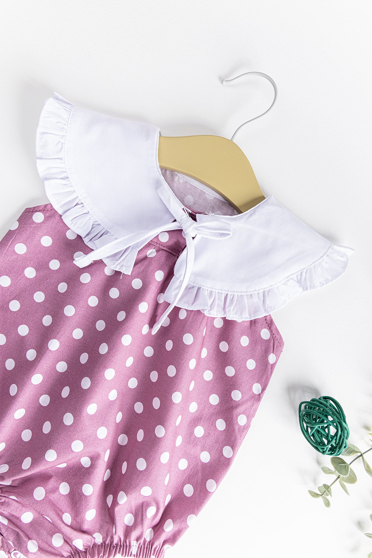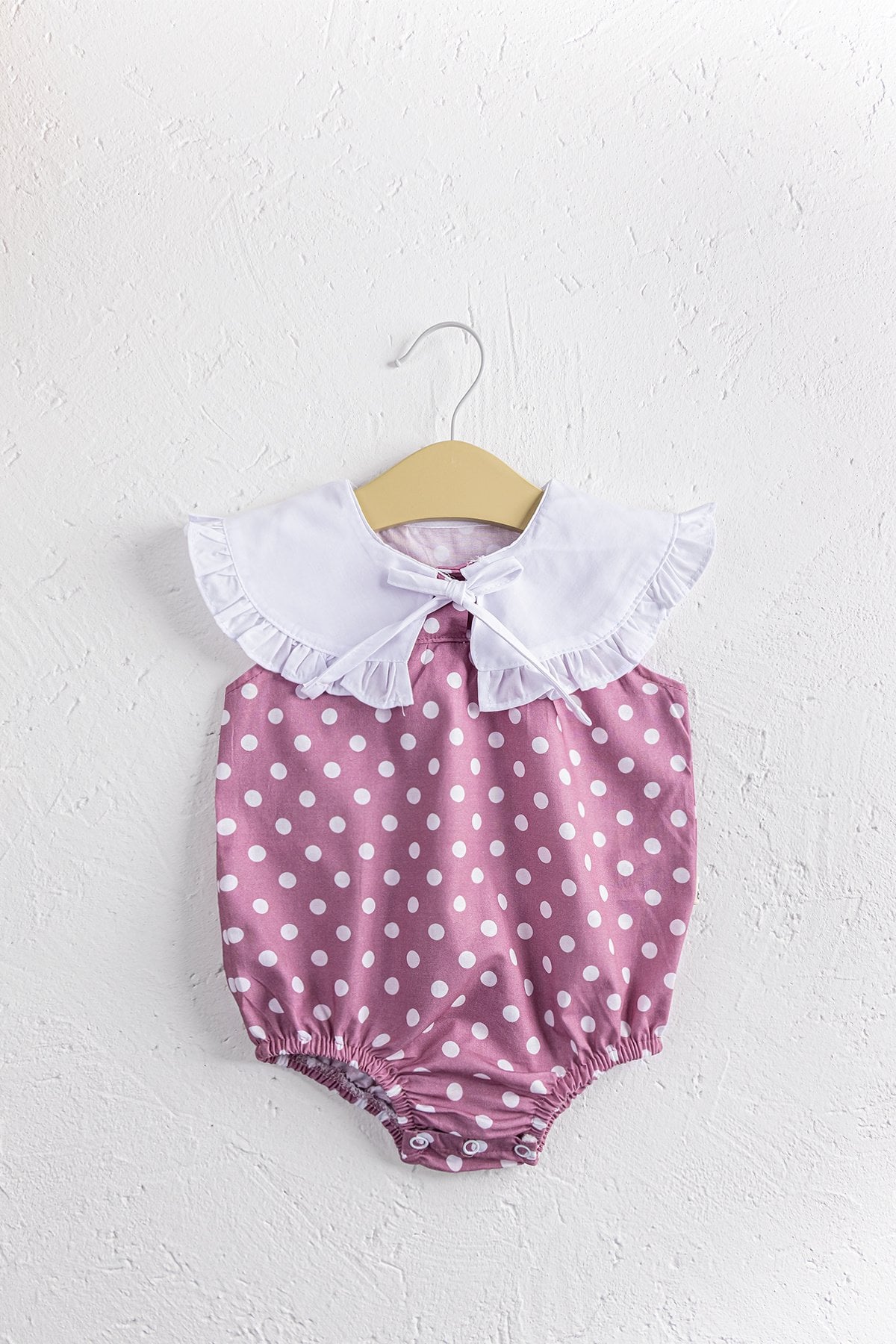 Puantiye Desenli Bebe Yakalı Kız Bebek Tulum