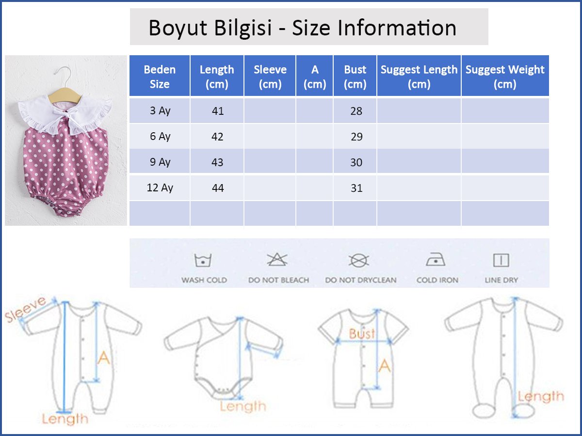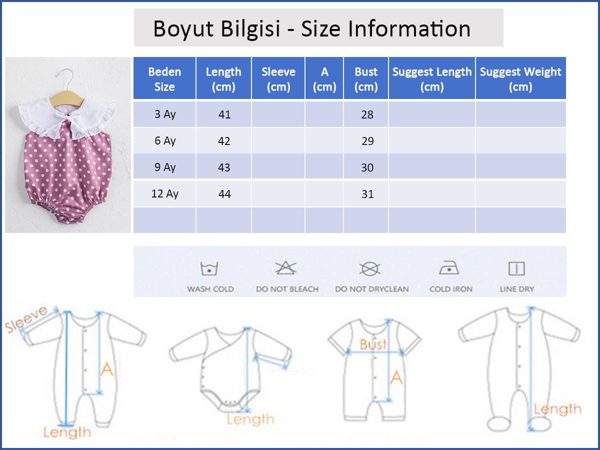 - Bebek tulum soft dokulu pamuklu kumaş ile üretilmiştir.