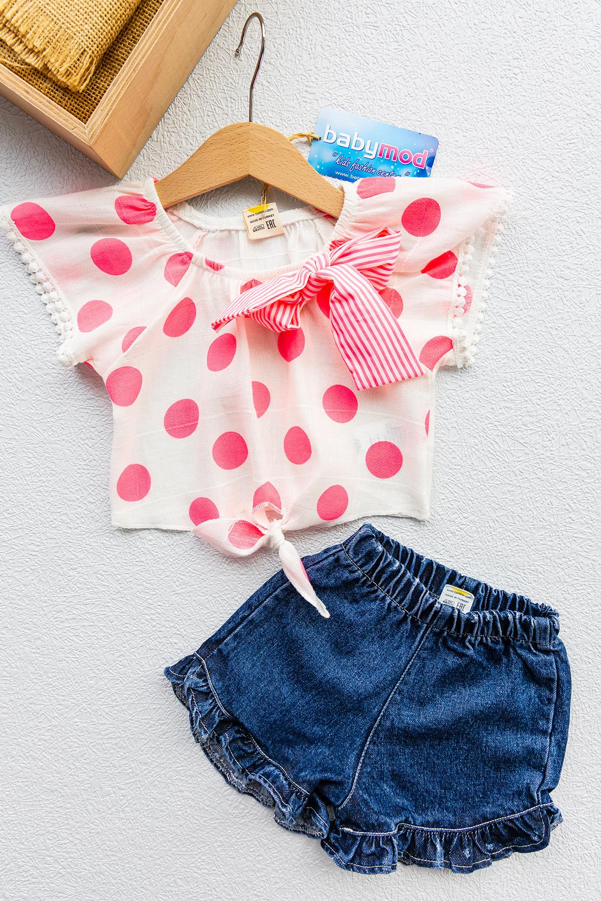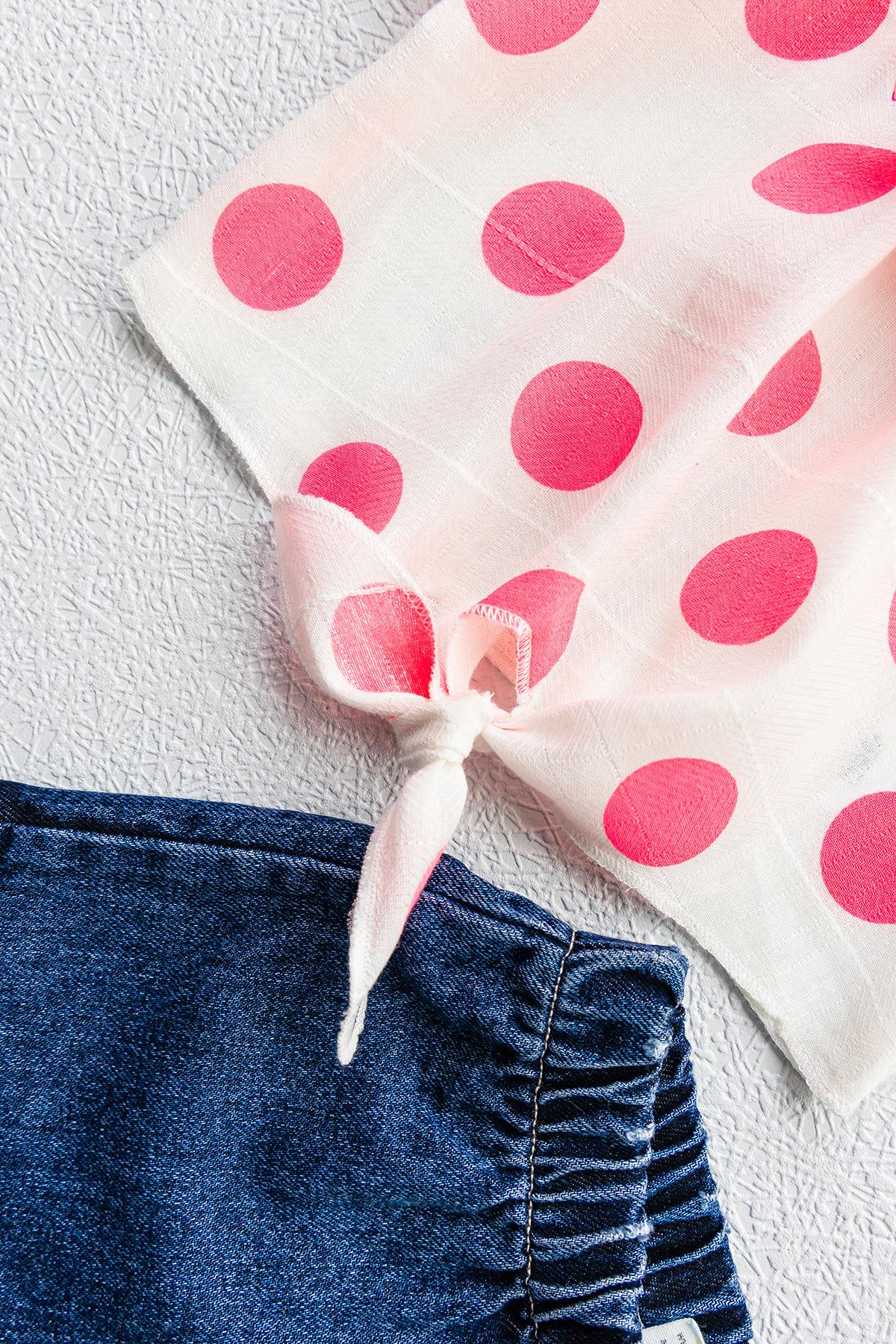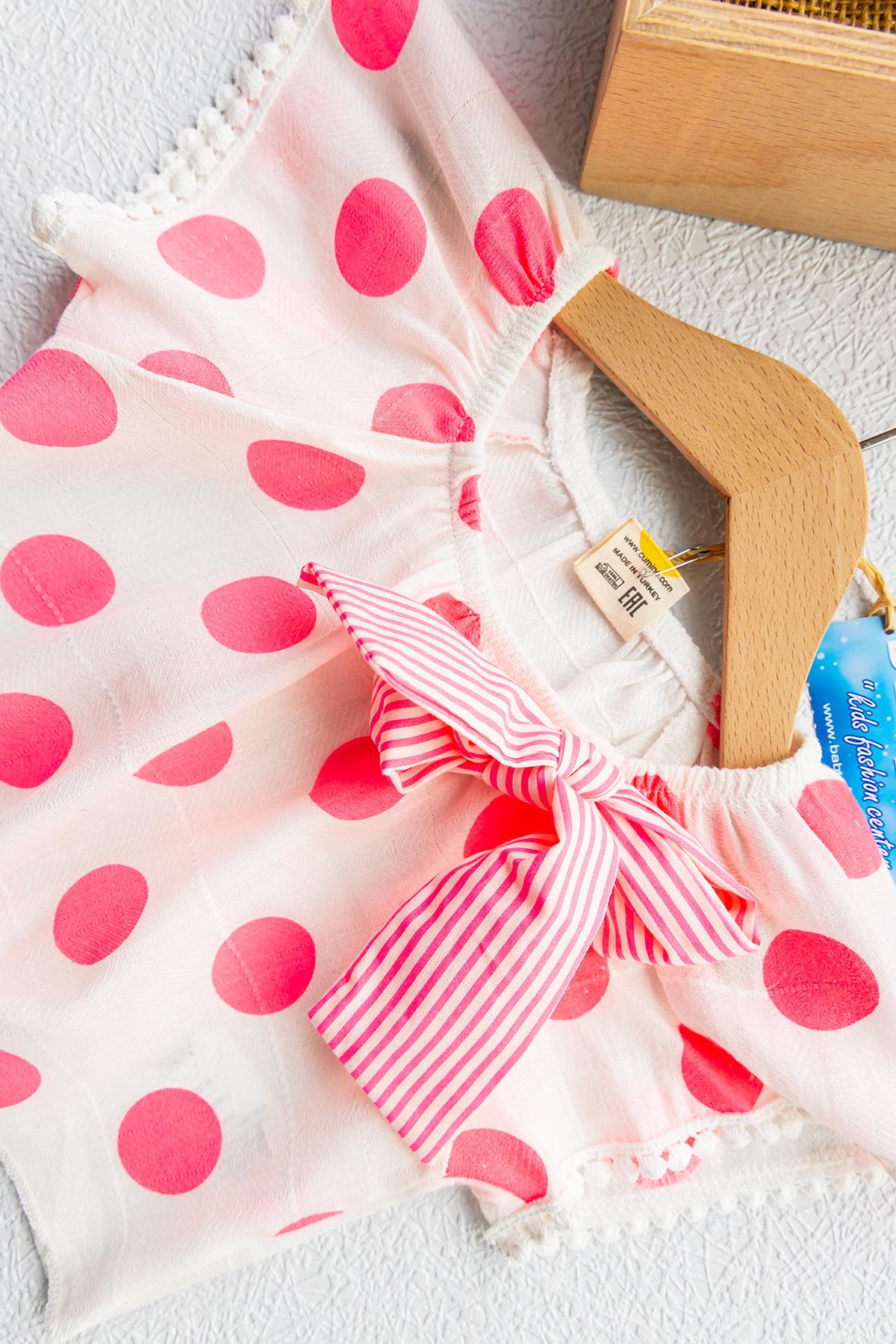 Puantiye Desenli Fiyonklu İkili Kız Bebek Takım