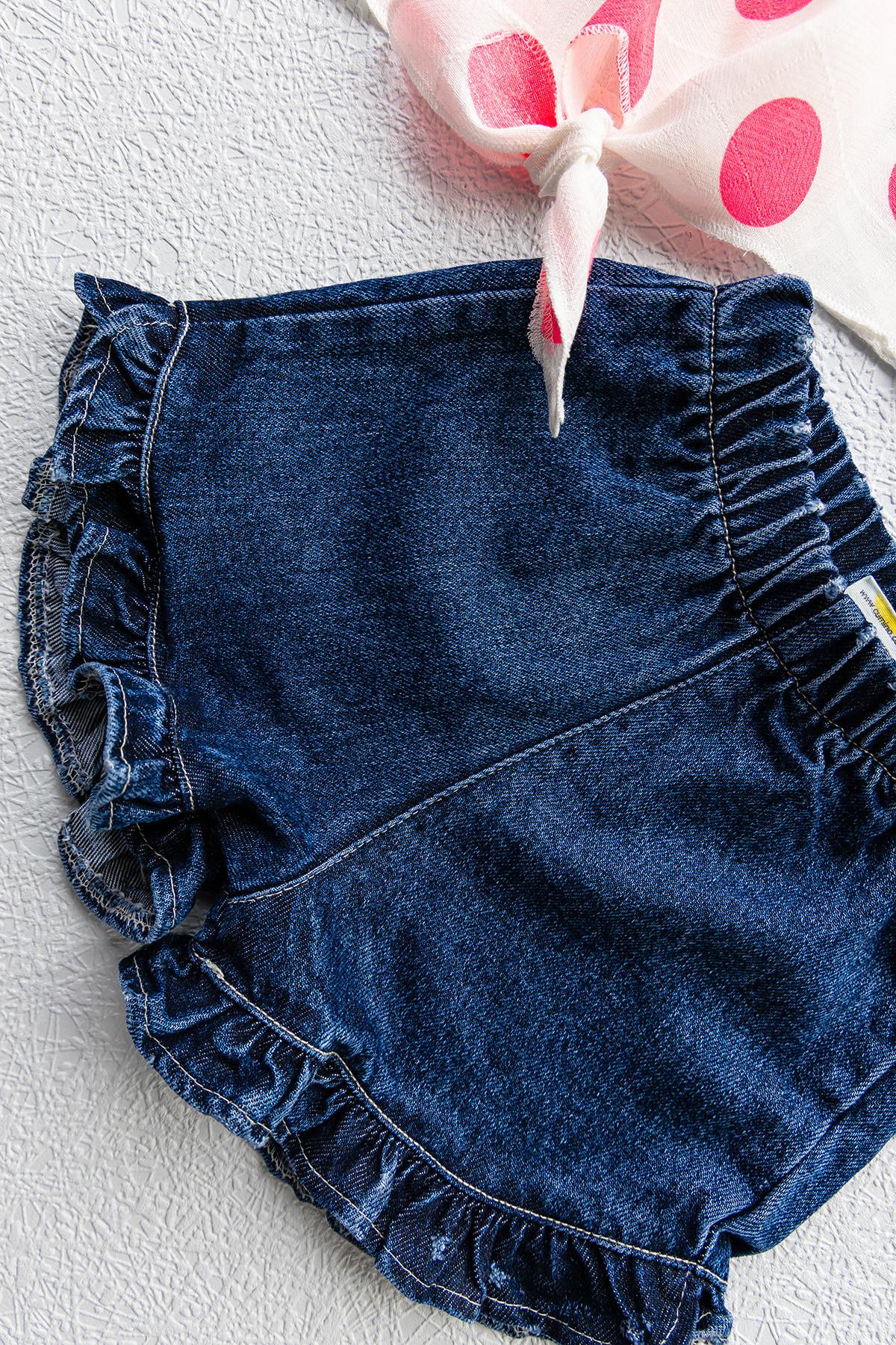 - Şortun paçası fırfır görünümlüdür.