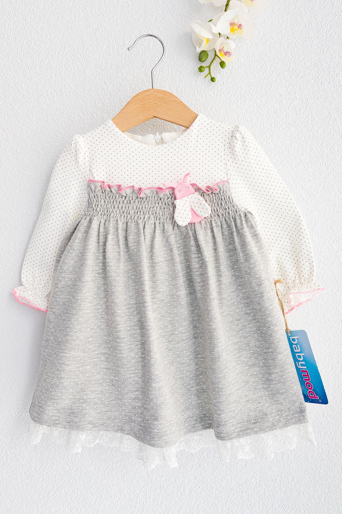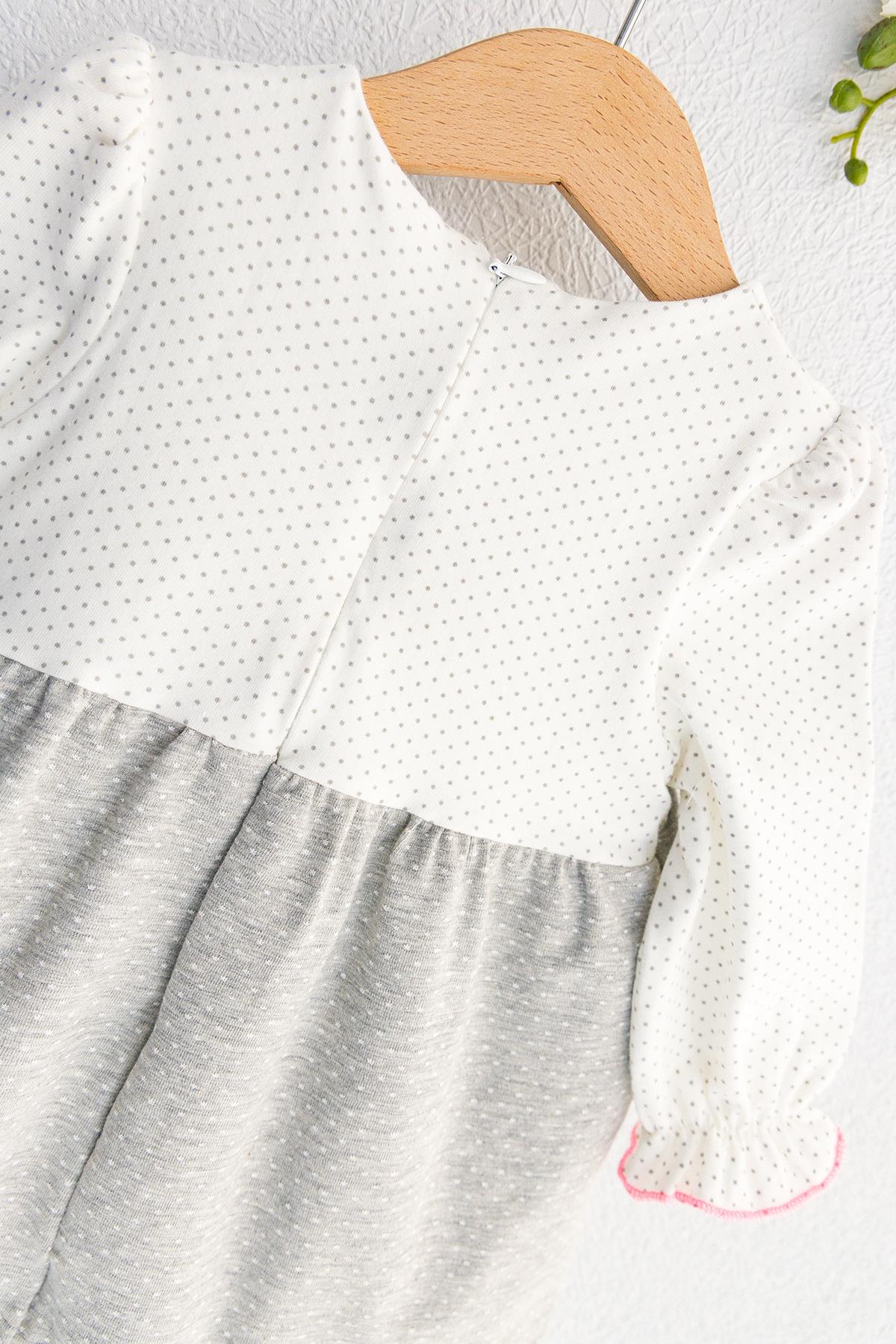 Puantiye Desenli Güpürlü Uzun Kollu Bebek Elbise GRİ - 18 Ay