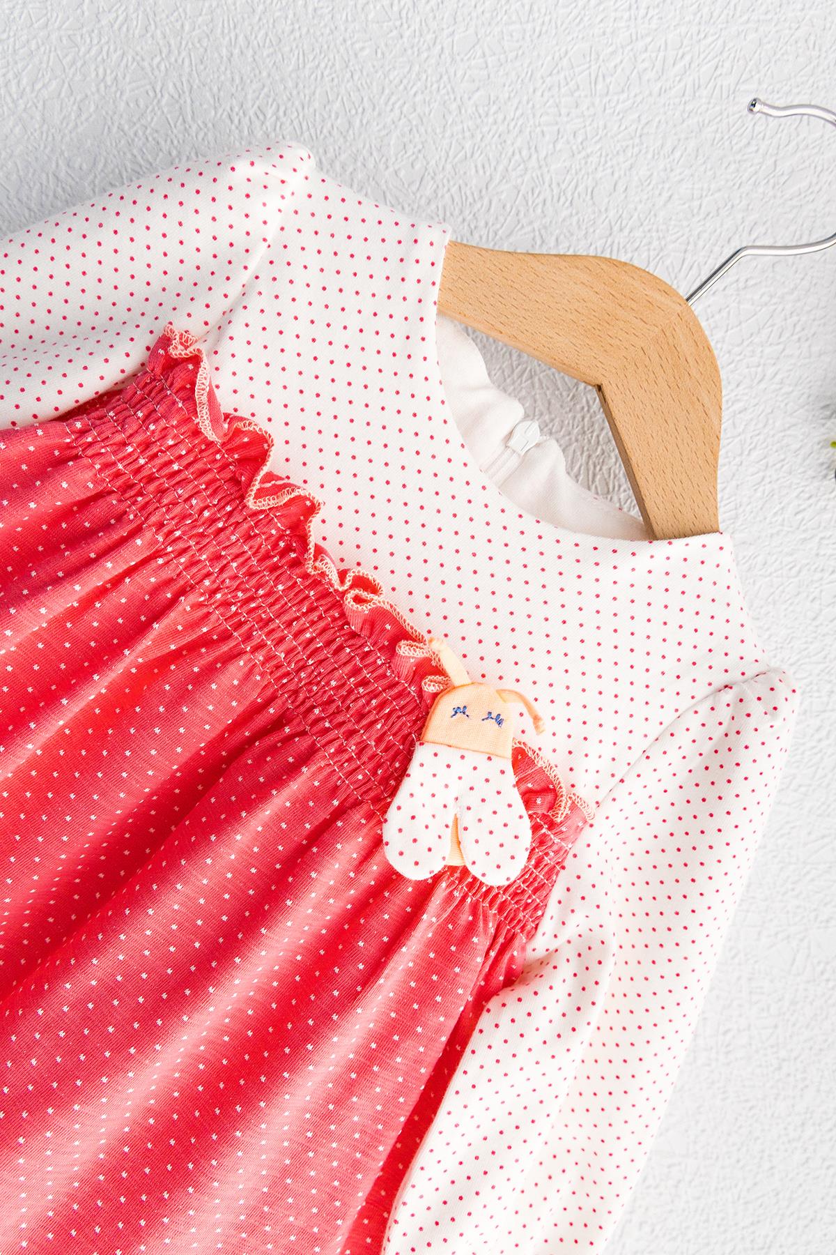 Puantiye Desenli Güpürlü Uzun Kollu Bebek Elbise NARÇİÇEĞİ - 6 Ay