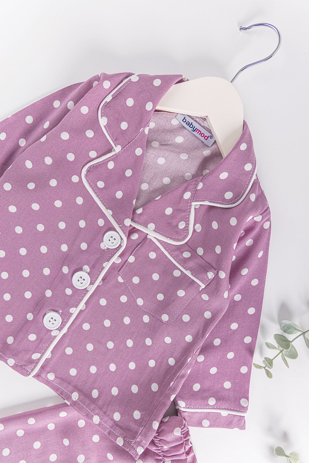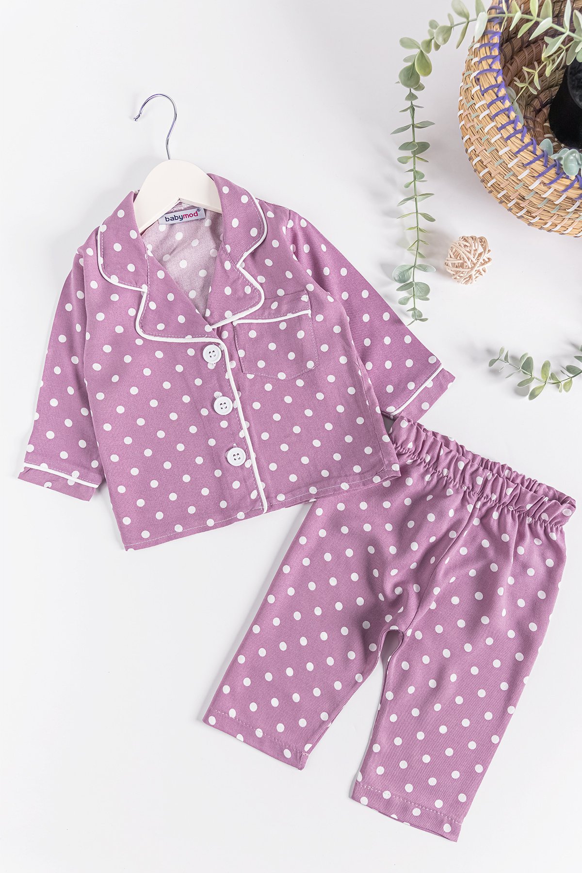 Puantiye Desenli Önden Düğmeli Kız Bebek Pijama Takımı MOR - 6-9 AY