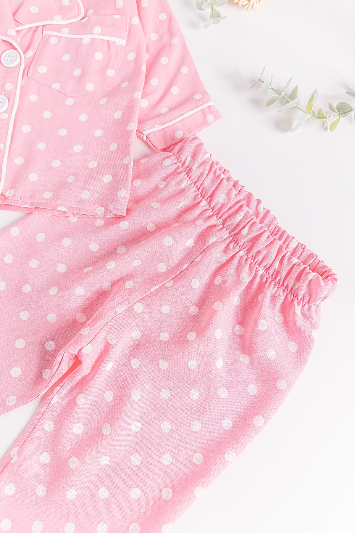 Puantiye Desenli Önden Düğmeli Kız Bebek Pijama Takımı