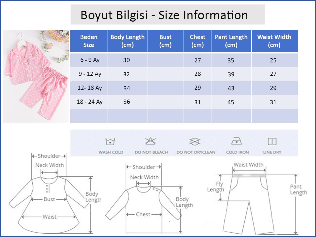 - Pijama üstü önden düğmelidir.