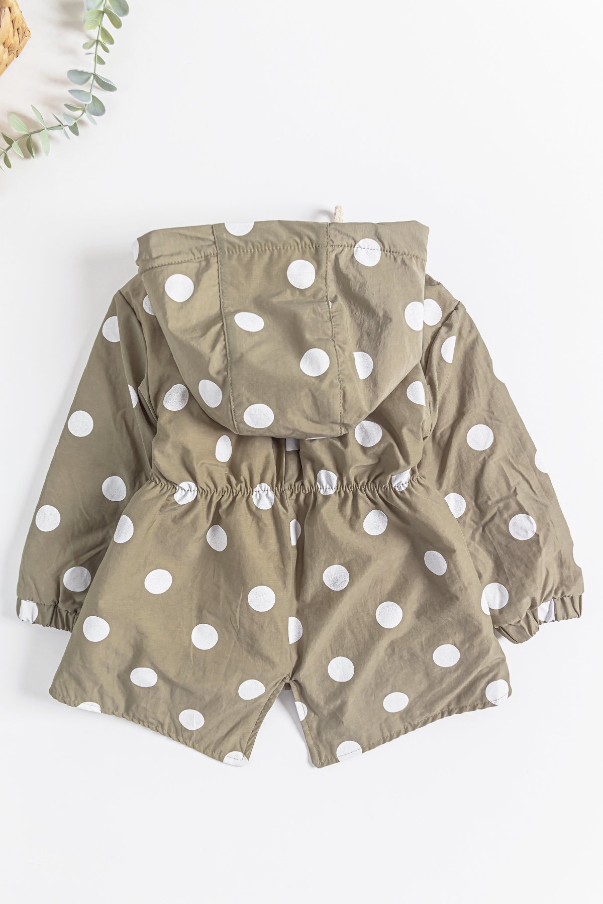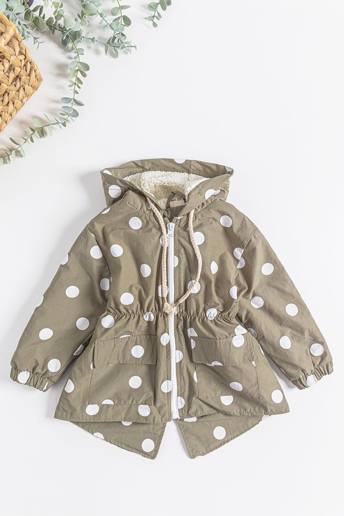 Puantiye Desenli Peluş Astarlı Kız Çocuk Yağmurluk Çocuk Mont HAKİ - 2 Yaş