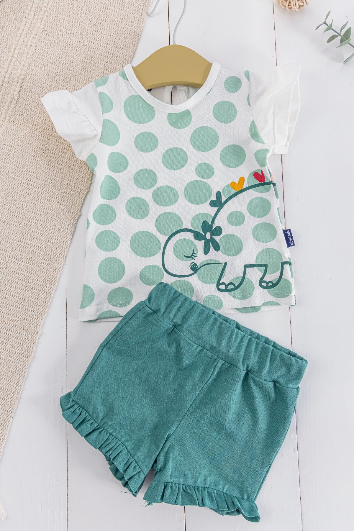 Puantiyeli Dino Figürlü 2'li Yazlık Kız Bebek Takım