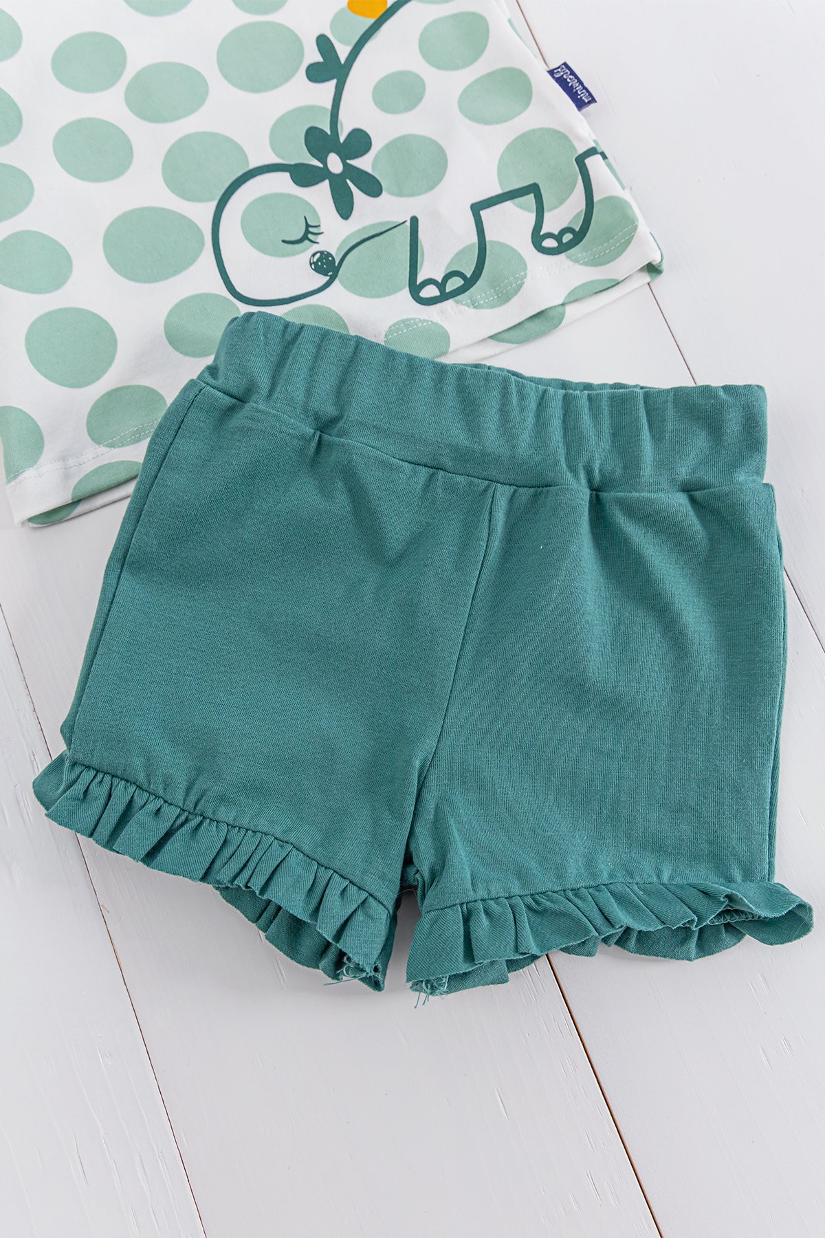 - Bebek tişörtün kol kenarları hafif fırfırlıdır.