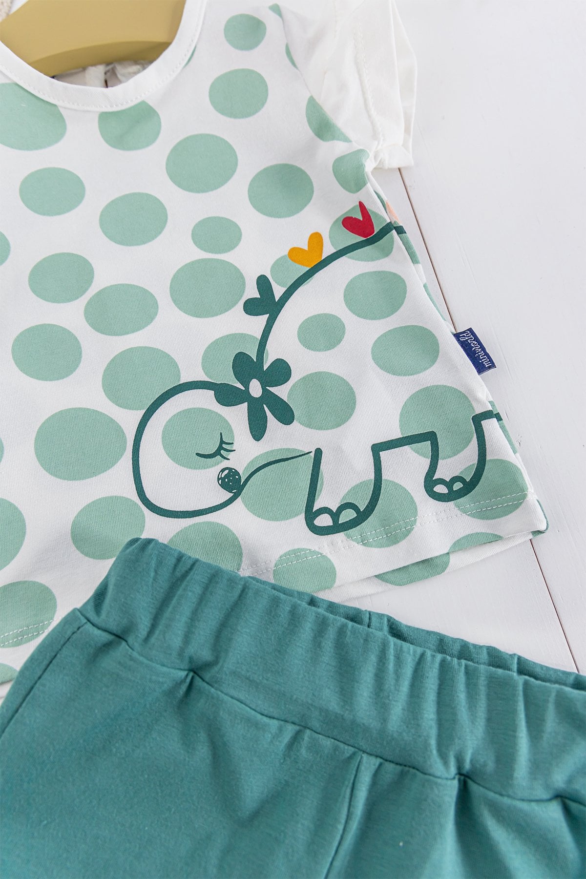 - Bebek tişört puantiye desenlidir.