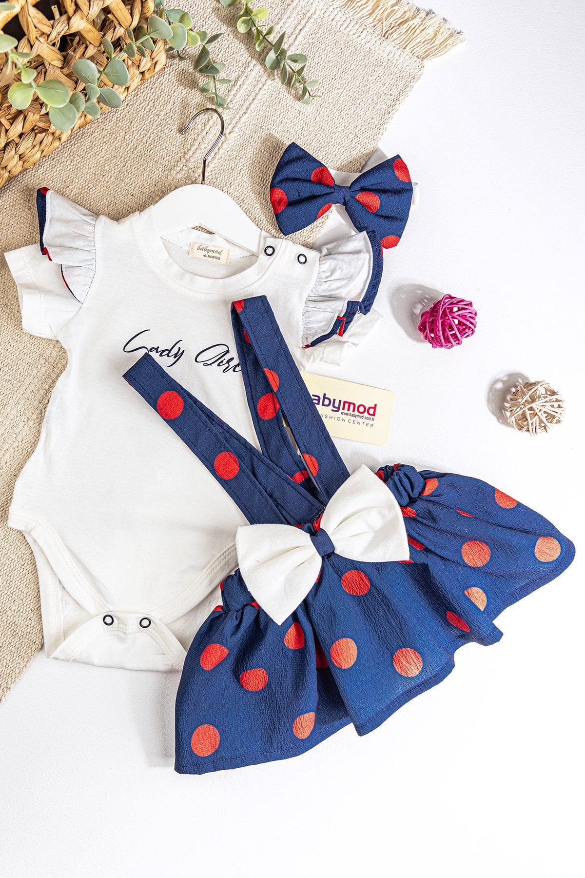 Babymod Polka Dot Bow Bandana Summer Baby Girl Salopet Dress