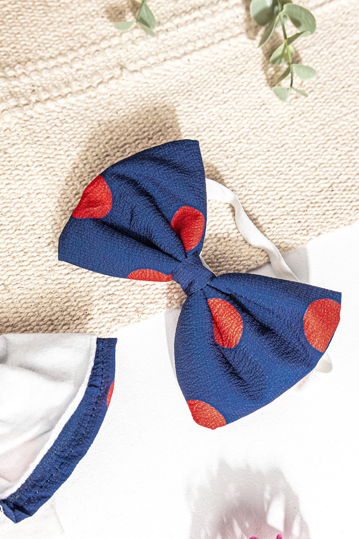 Puantiyeli Fiyonklu Bandanalı Yazlık Kız Bebek Salopet Elbise LACİVERT - 3-6 AY