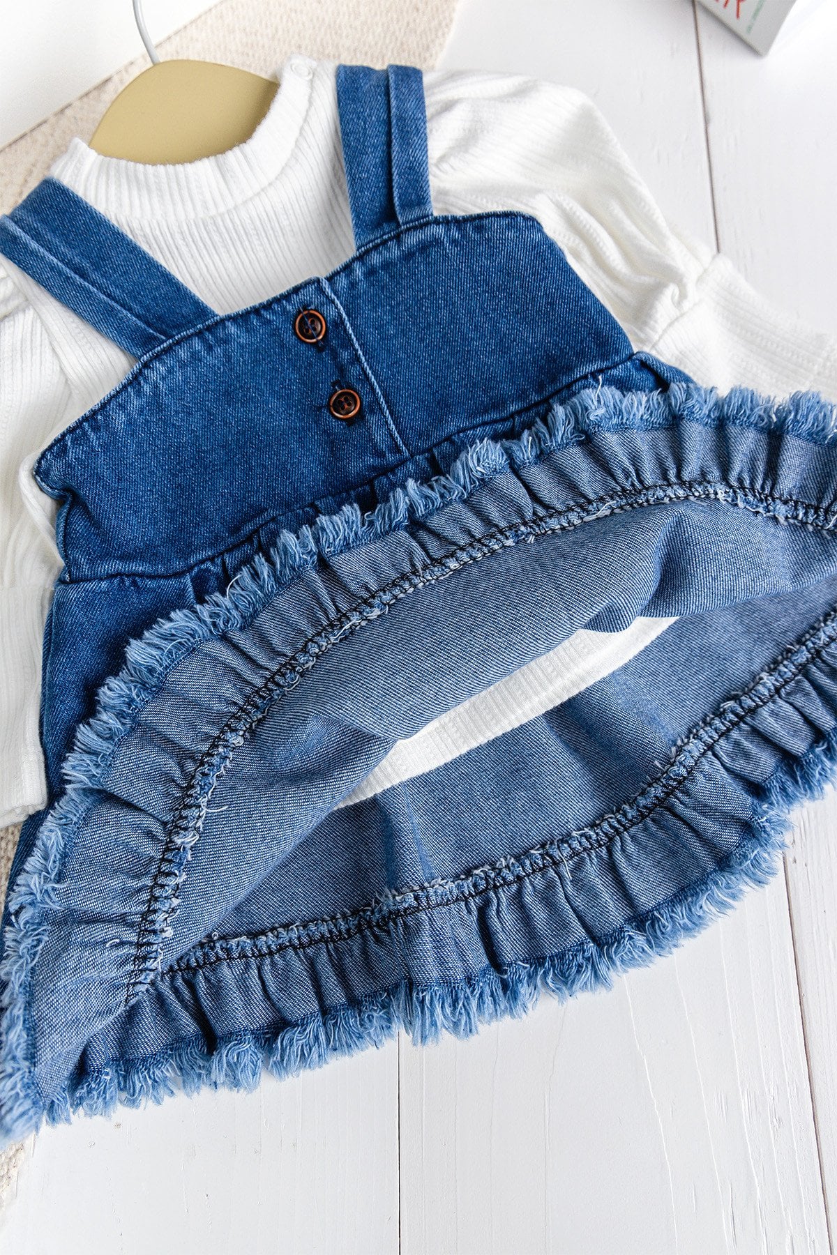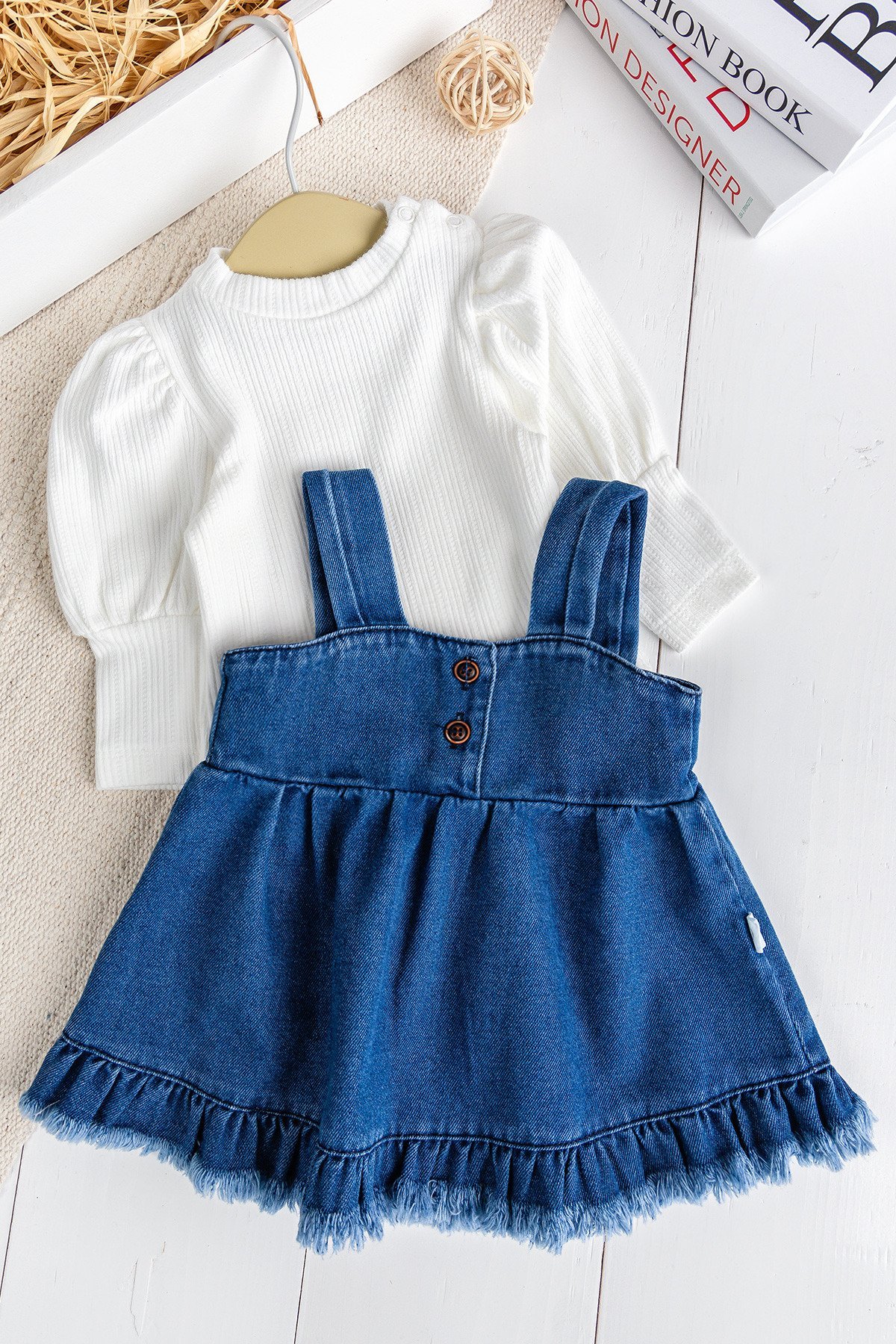 Babymod Tasseled Jean Gilet Dress Denim Salopet Blouse Set
