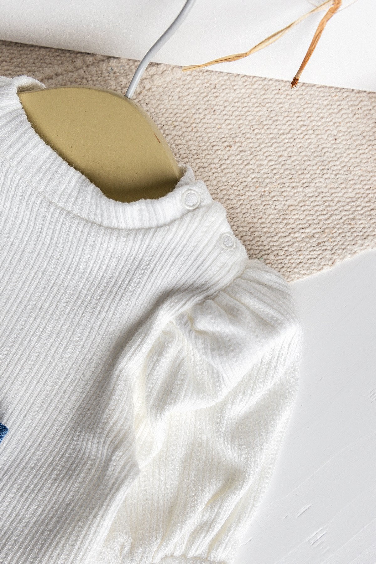 - Bebek buluz bisiklet yaka olup omuzdan çıt çıtlı modeldir.