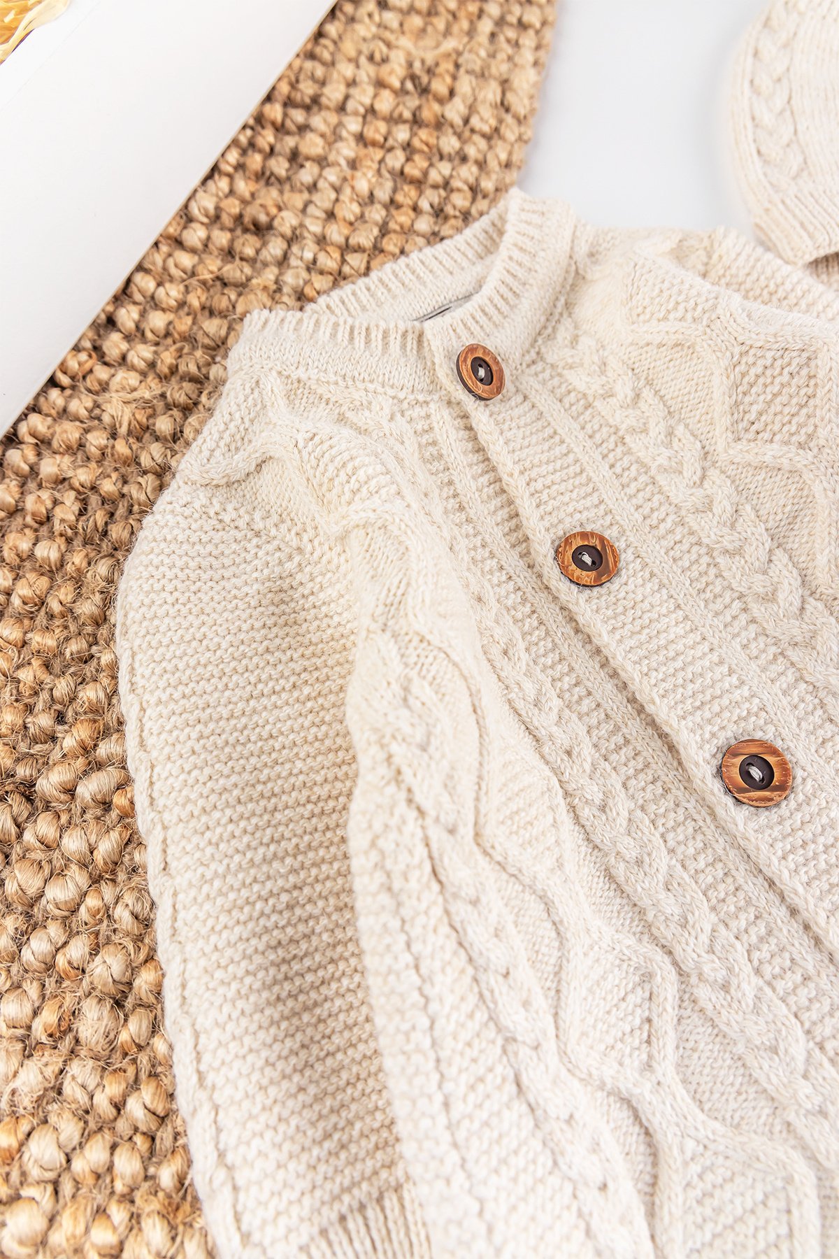 - Bebek tulum saç örgüsü desenlidir.