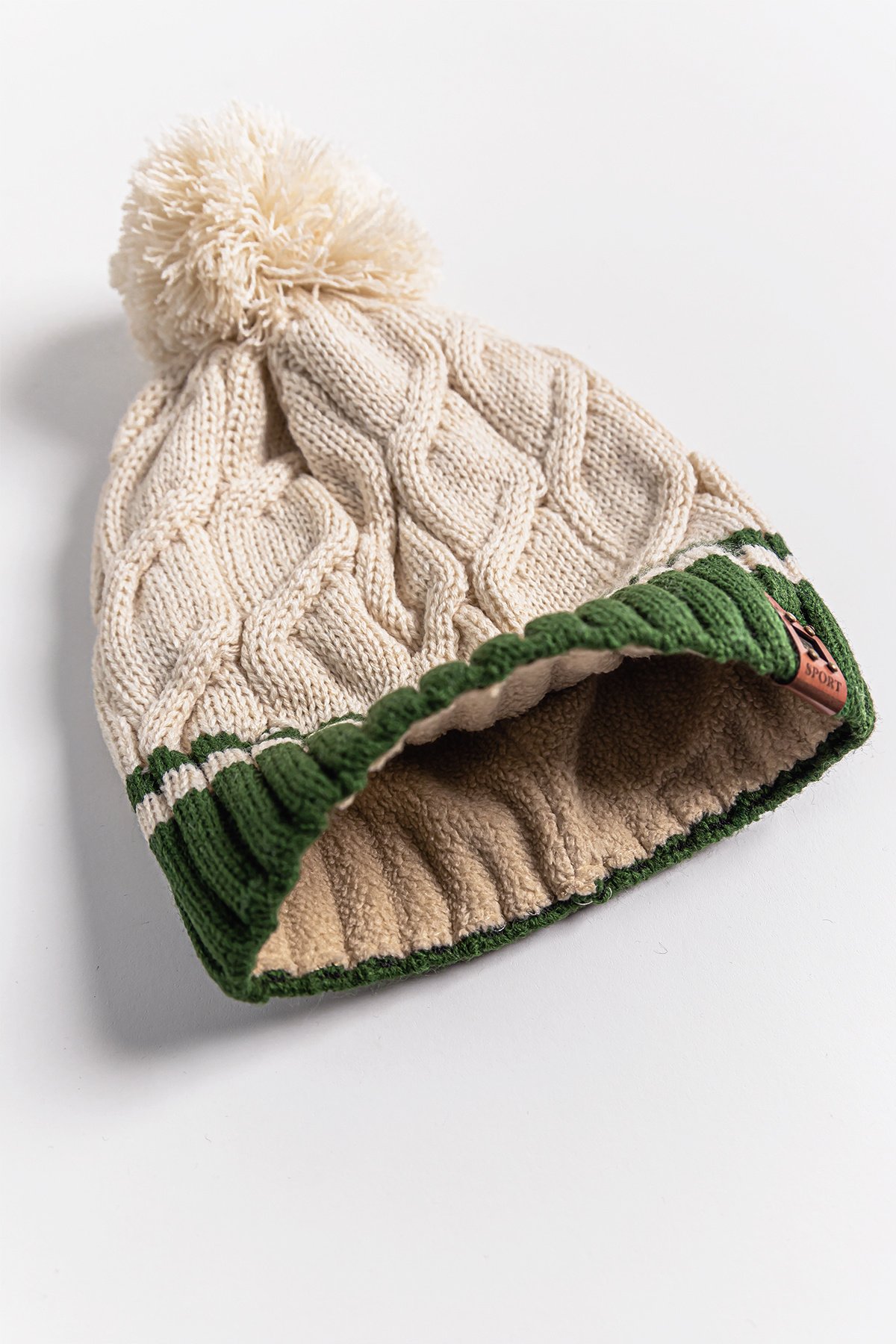 Saç Örgüsü Desenli Ponponlu 9-15 Yaş Erkek Çocuk Bere BEJ - 9-15 Yaş
