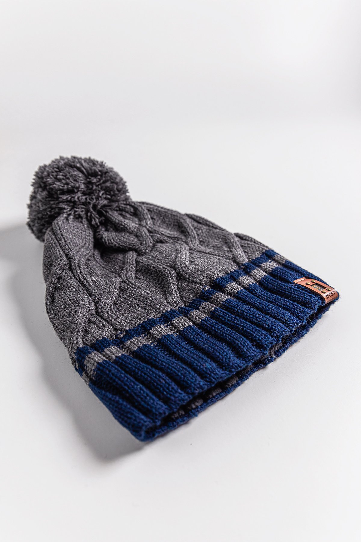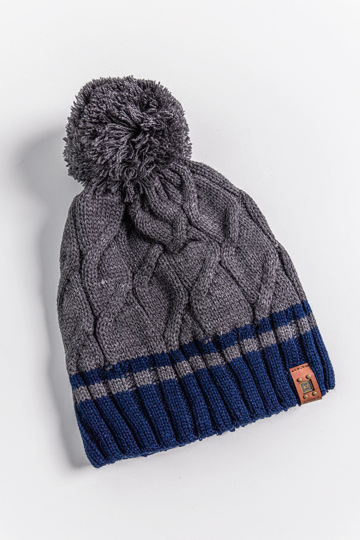 Saç Örgüsü Desenli Ponponlu 9-15 Yaş Erkek Çocuk Bere Füme - 9-15 Yaş