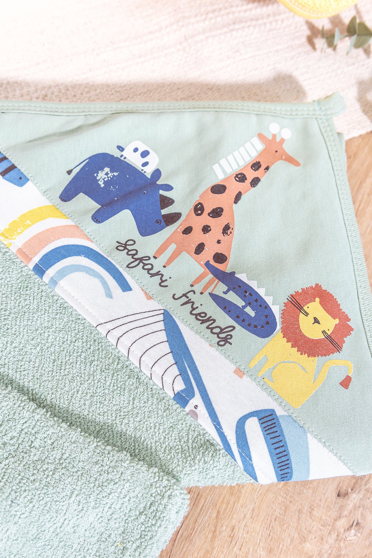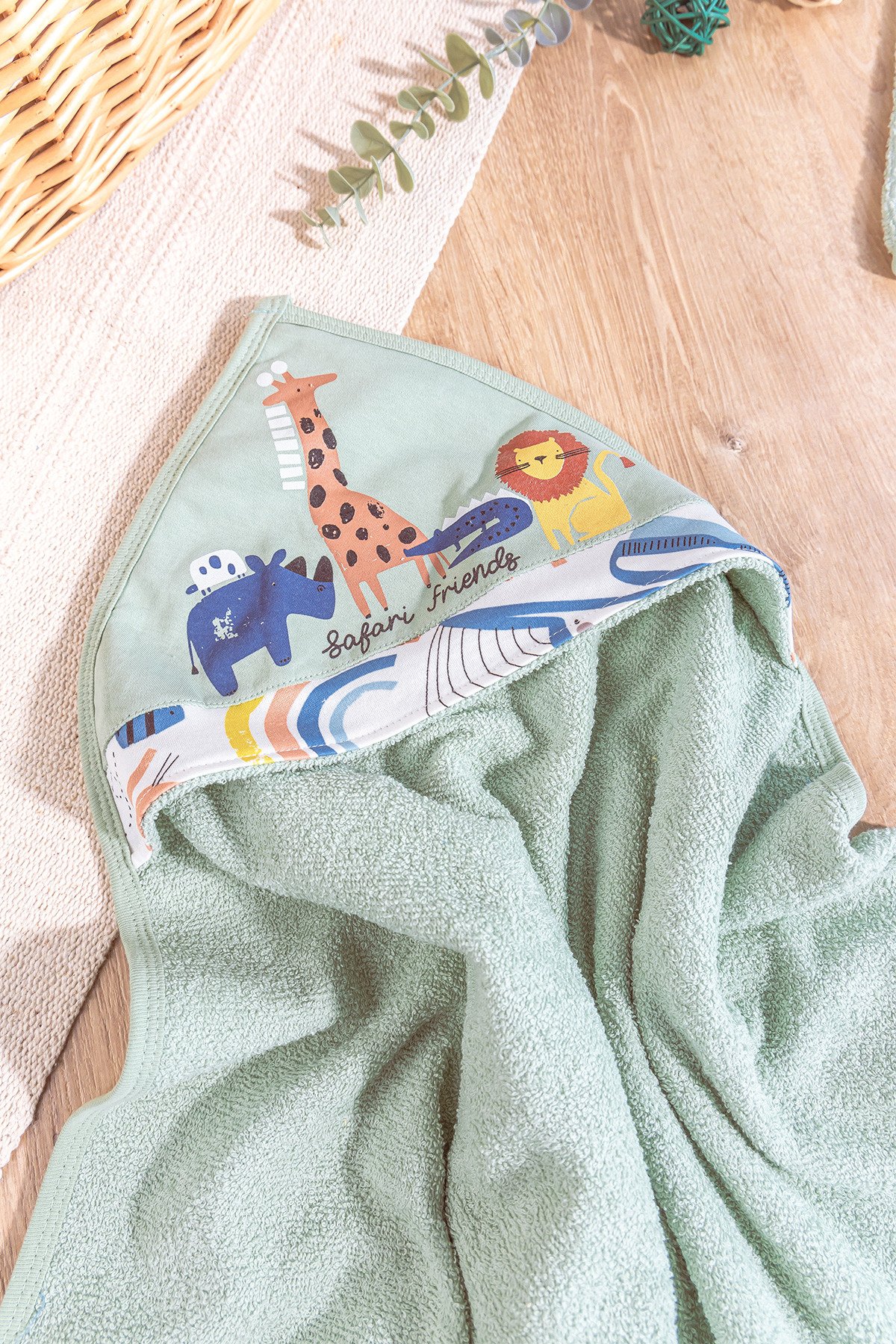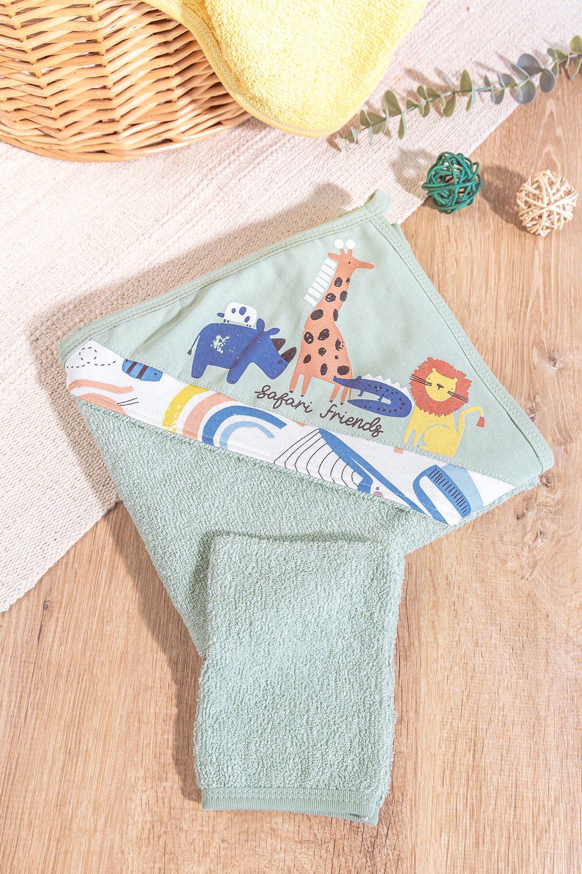 Safari Temalı 2 Parça Pamuklu Bebek Havlu Seti SU YEŞİLİ - Tek Ebat