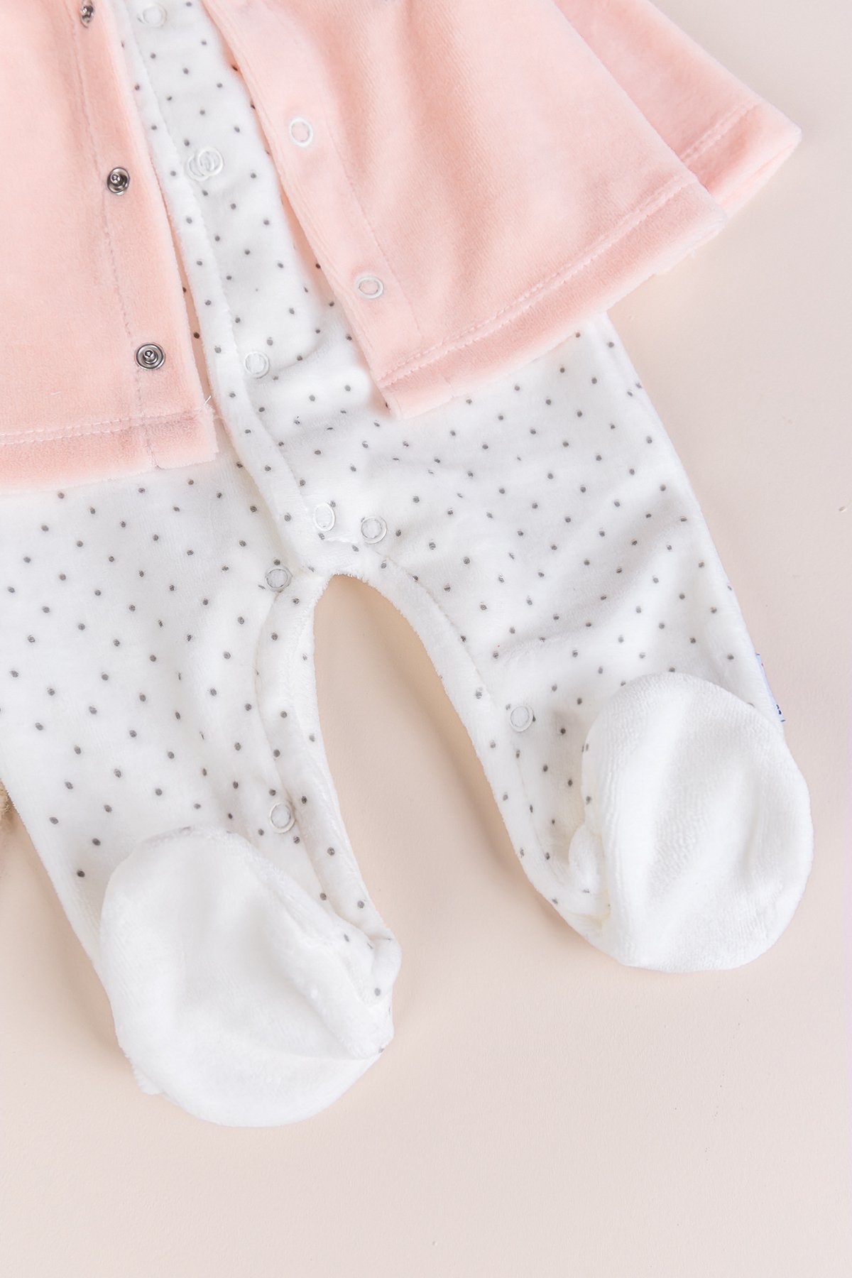 Hırkalı Bebe Yaka 2'li Kadife Kışlık Kız Bebek Tulum Set SOMON - 0-3 AY