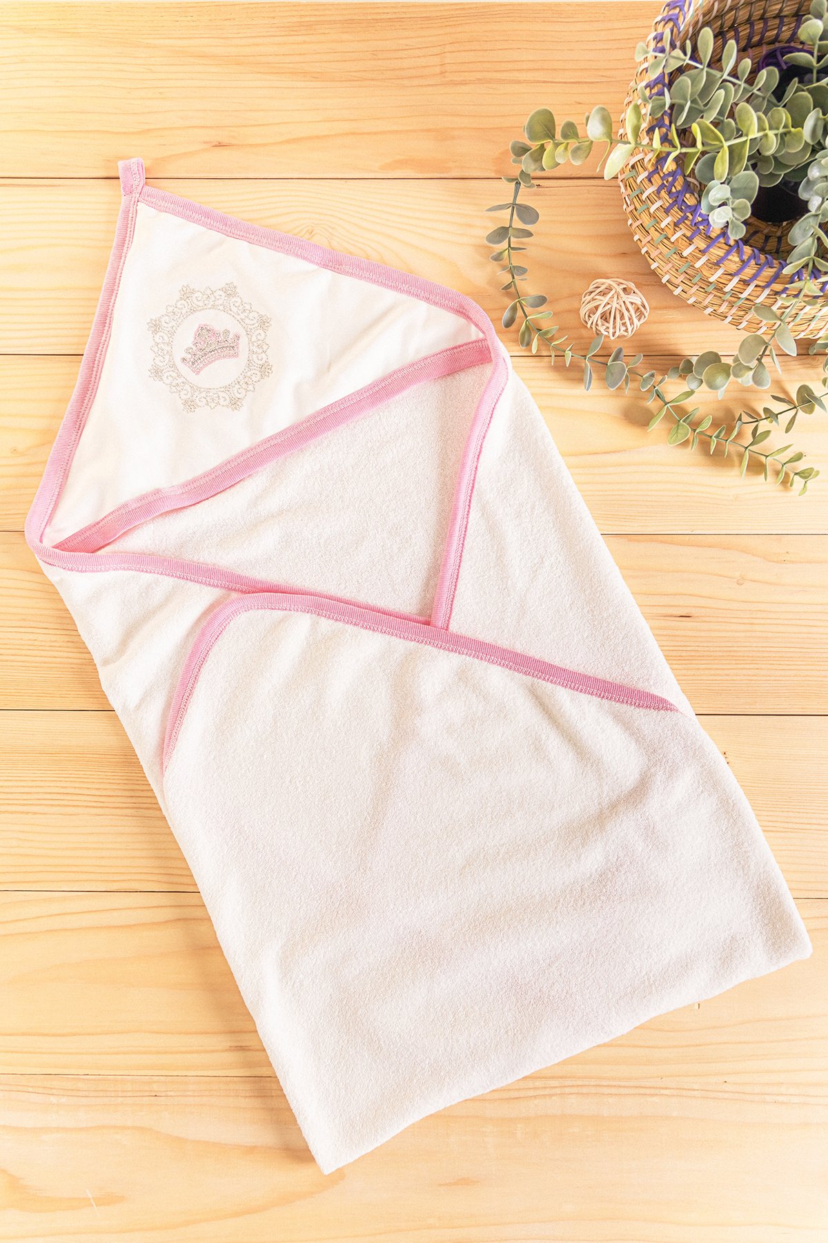 Taç İşlemeli Kız/Erkek Bebek Silinme Havlusu PEMBE - Tek Ebat