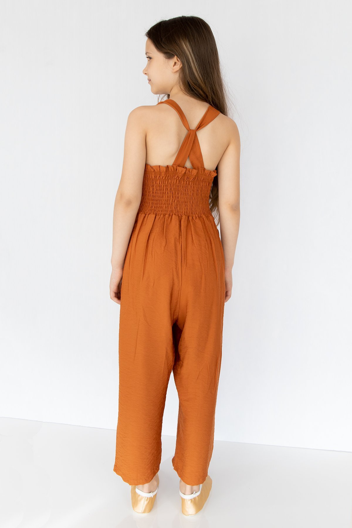 Tarçın Rengi Keten Kız Çocuk Tulum