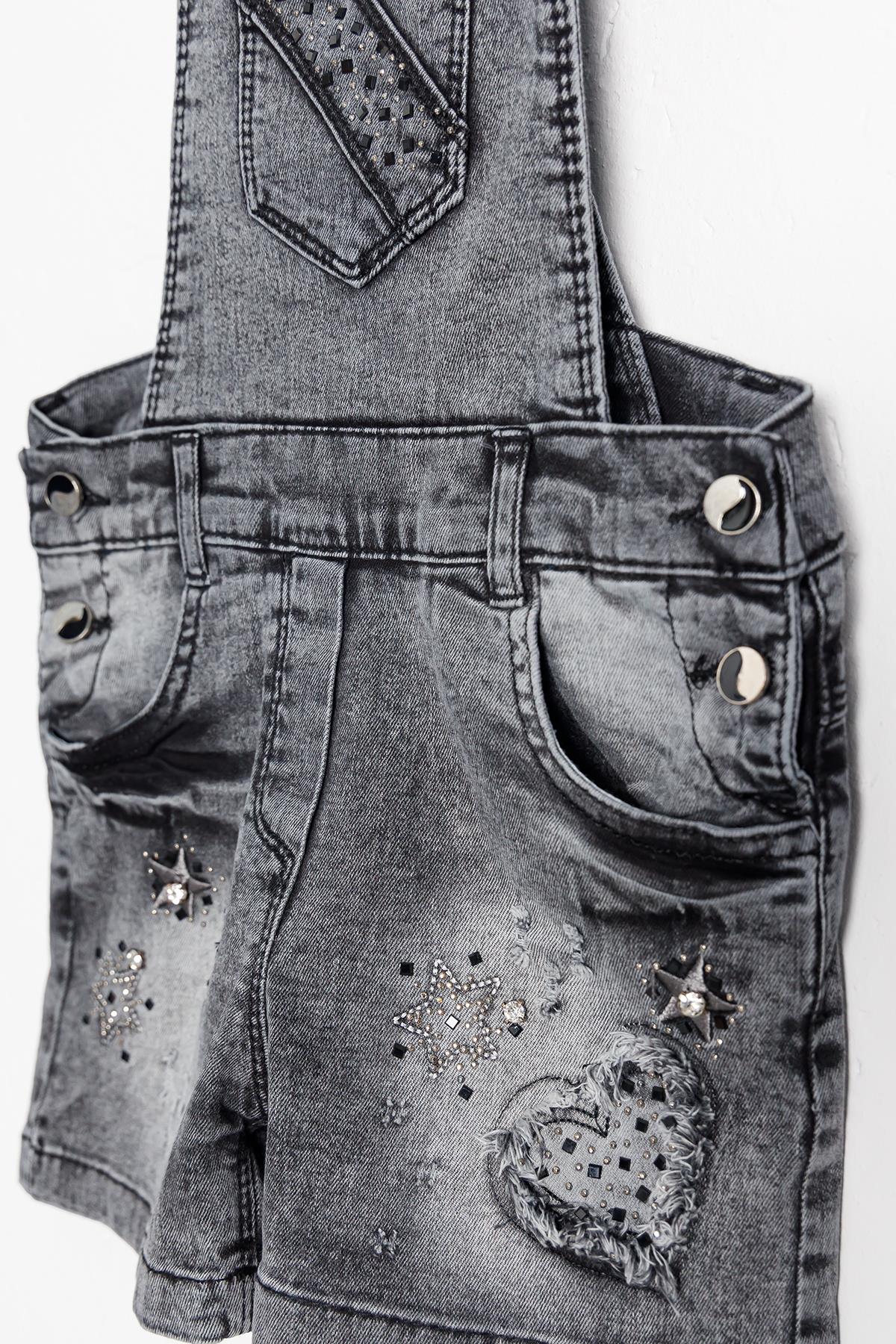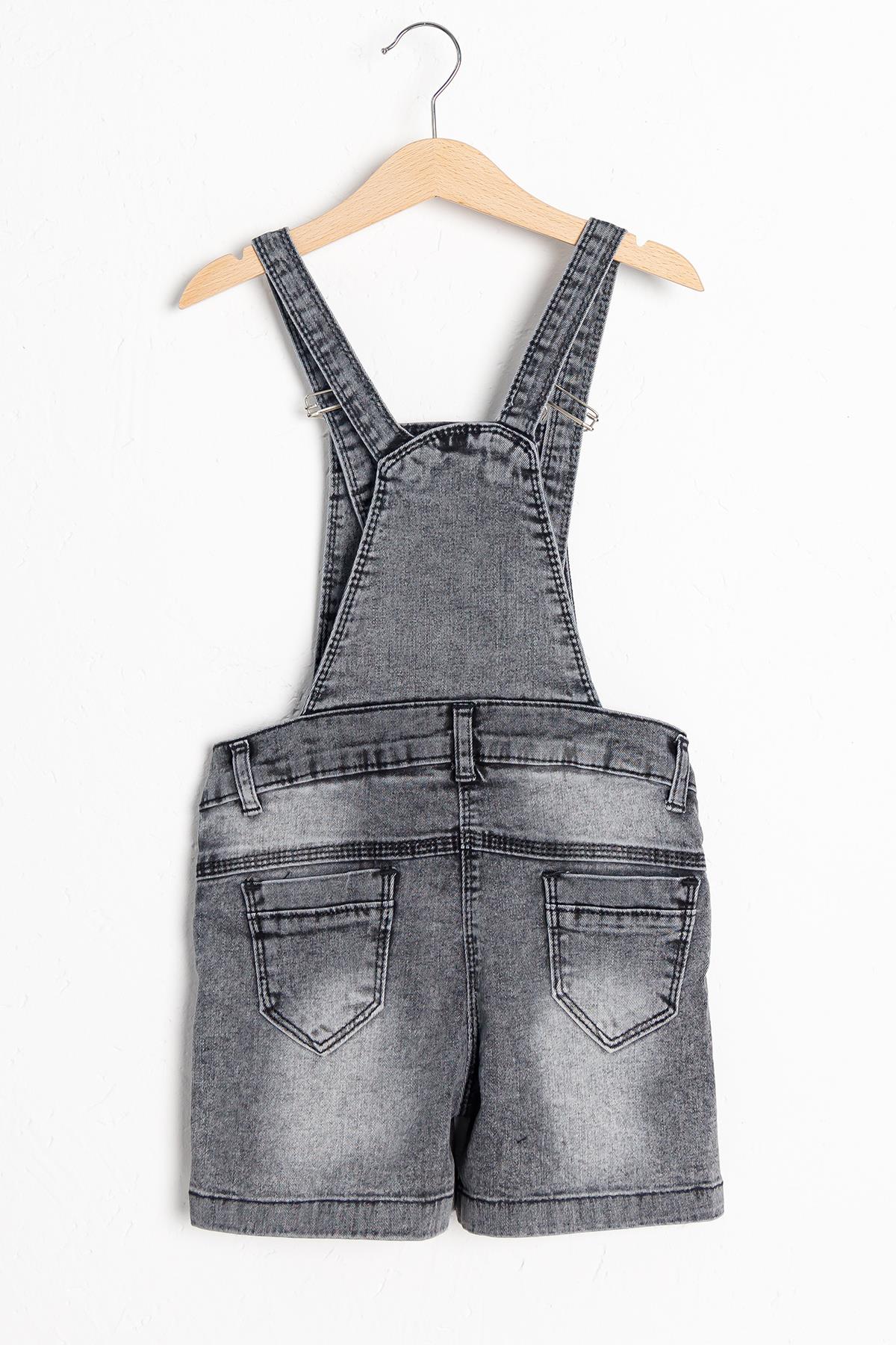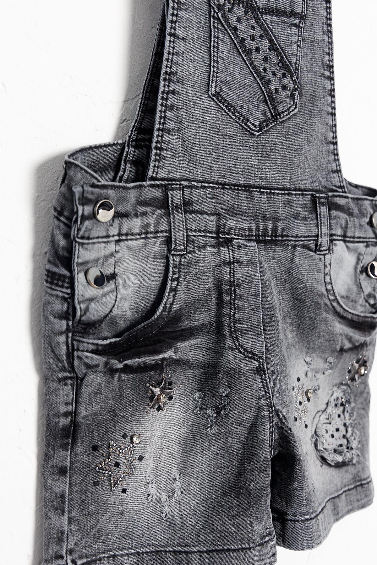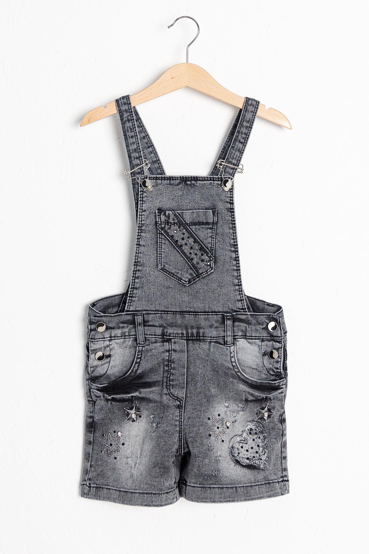 Taş İşlemeli Denim Kumaş Kız Çocuk Kot Salopet Tulum